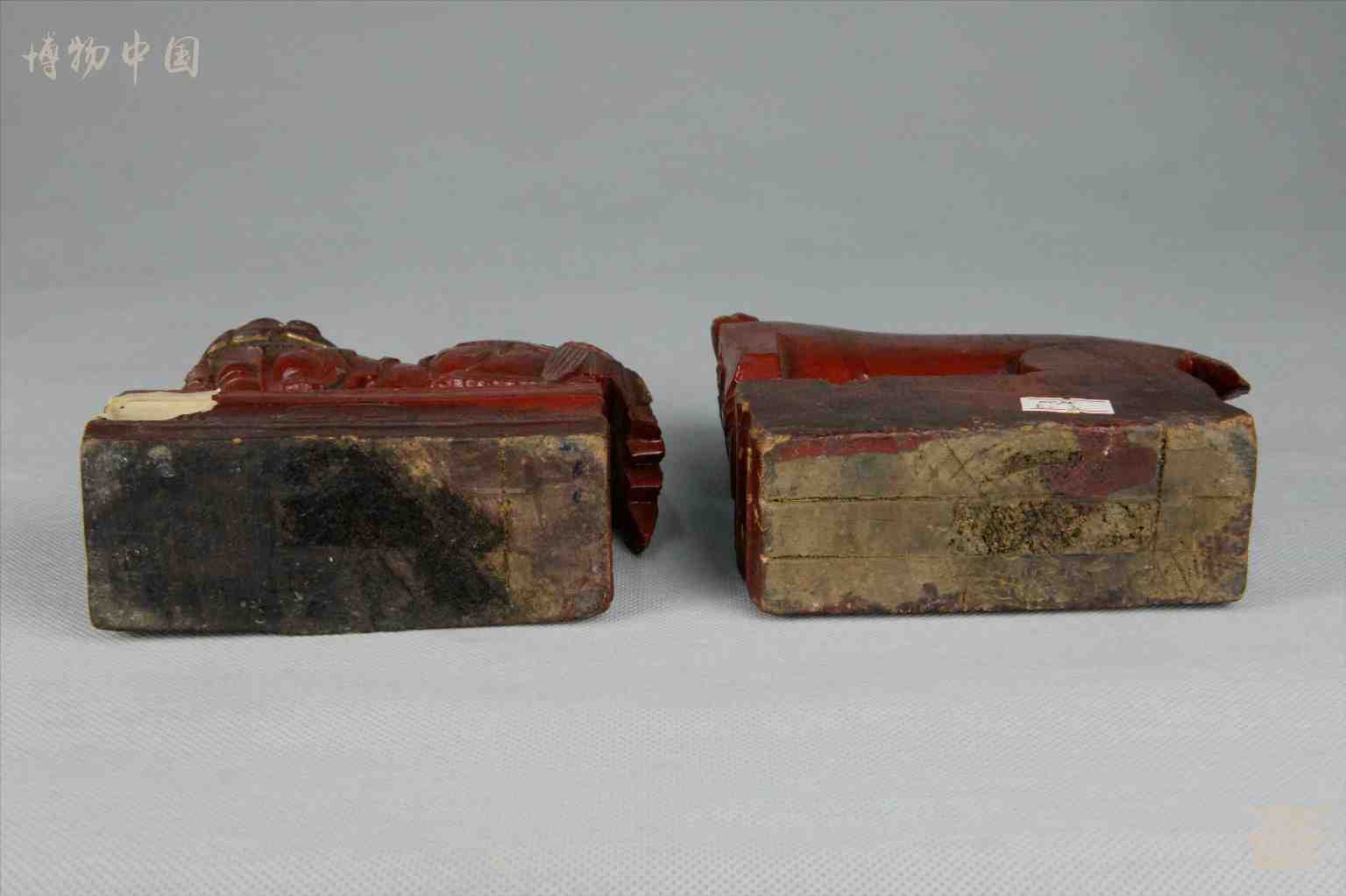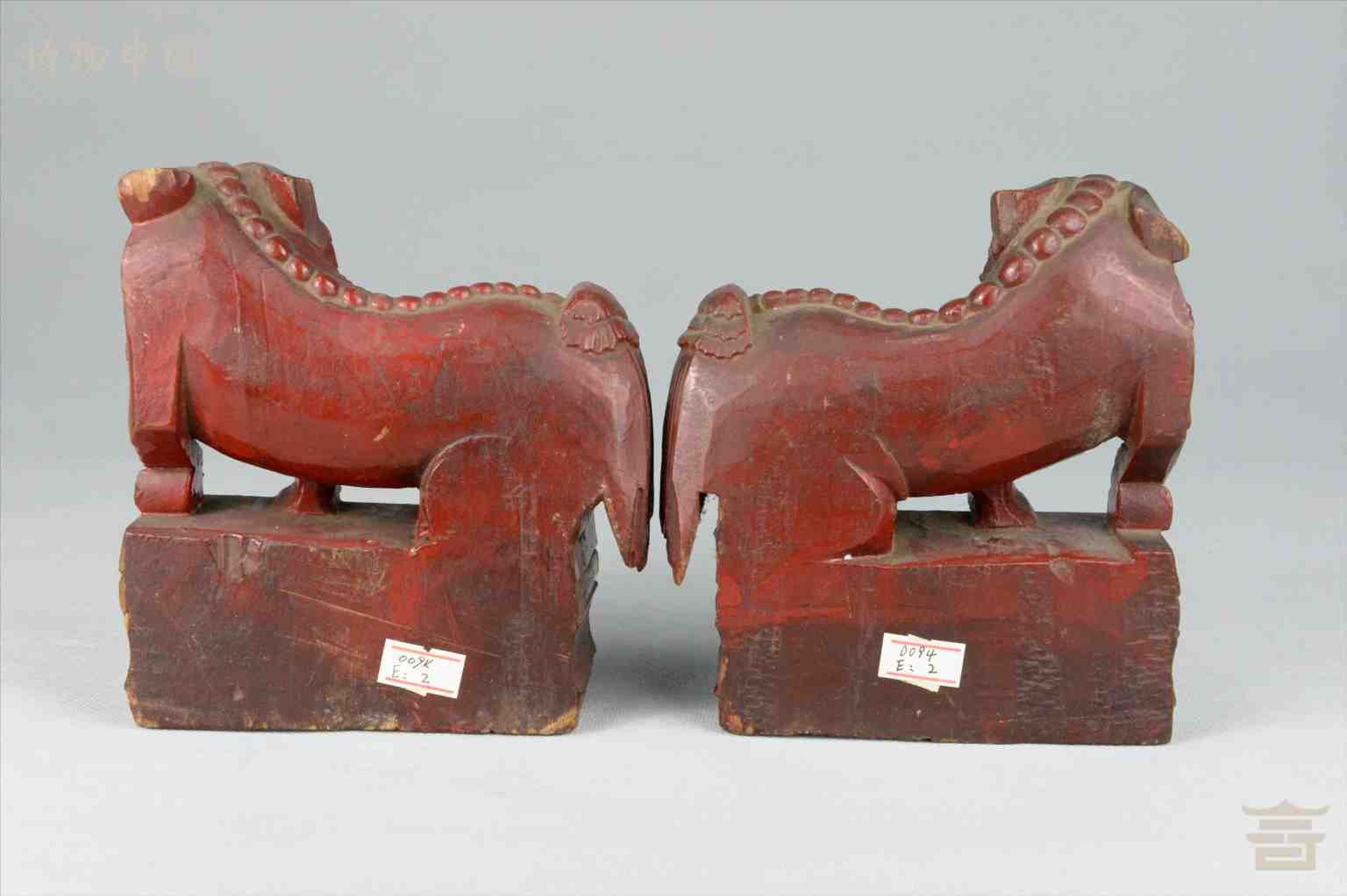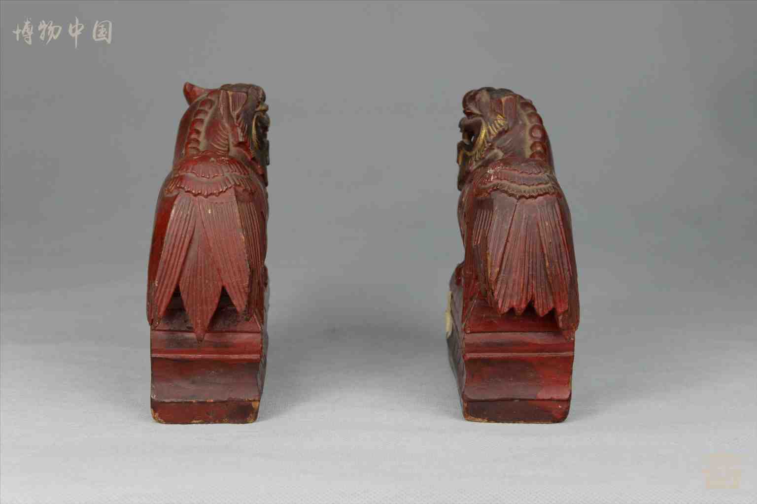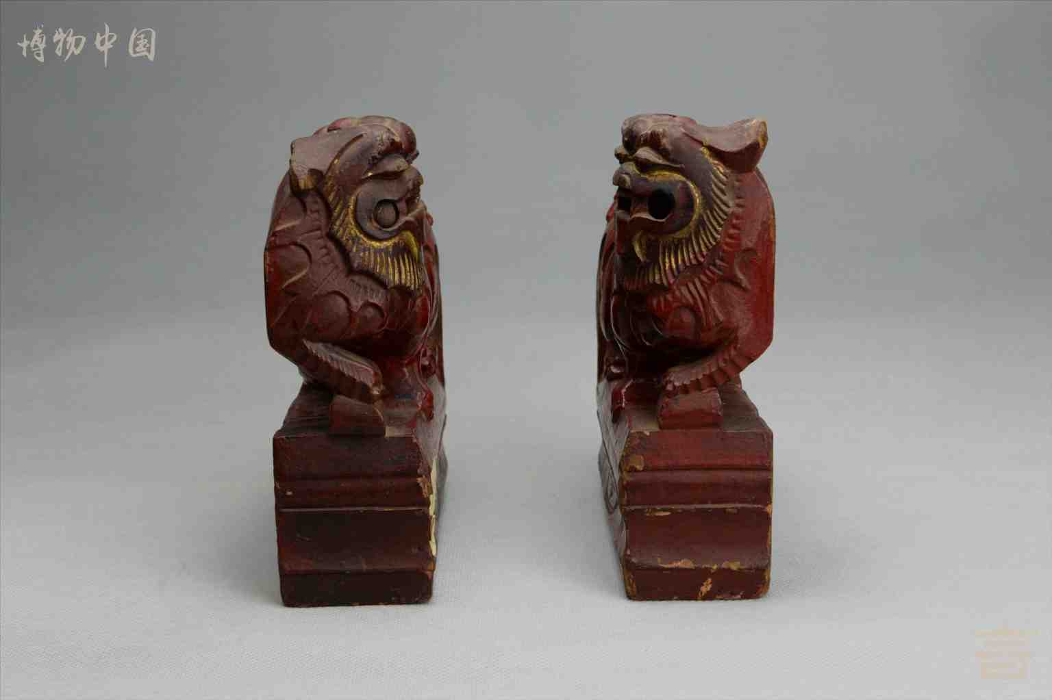 > 民国红□漆木雕狮