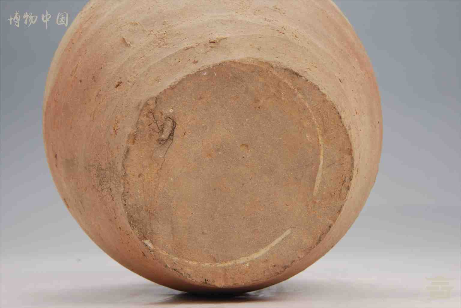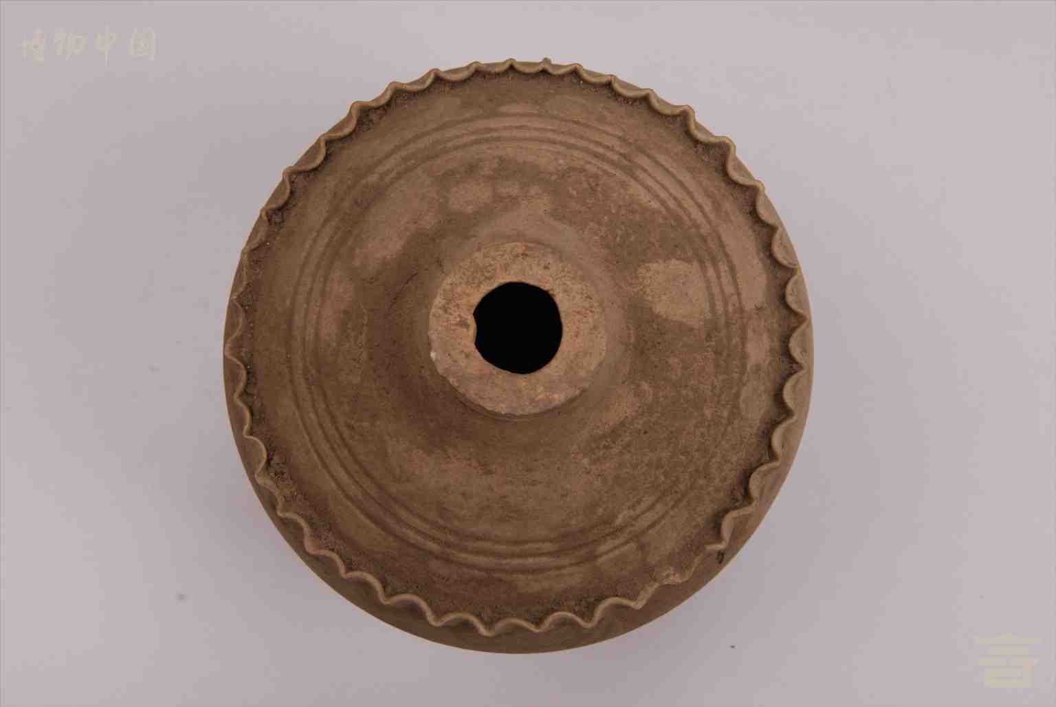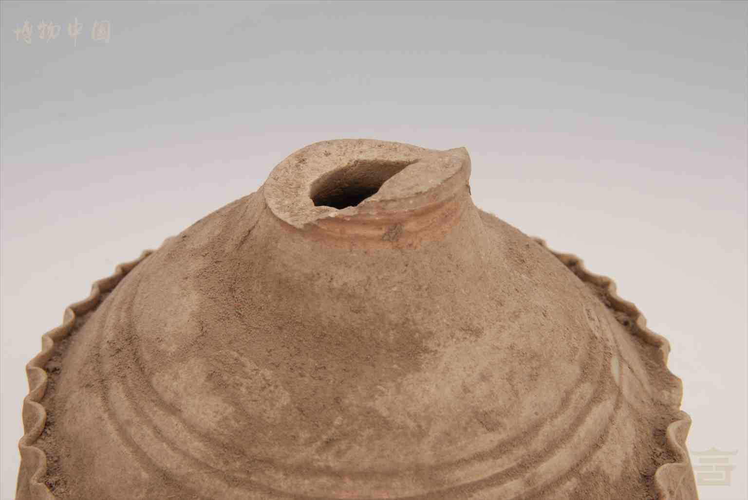 > 唐残堆塑水波纹青釉小口瓷瓶