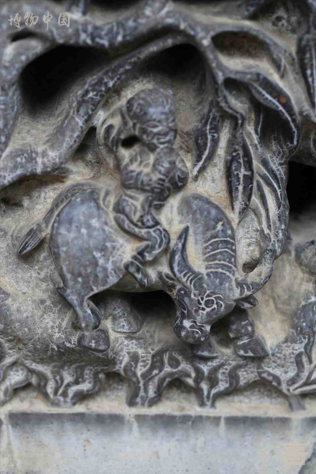 > 民国牧童骑牛透雕石凳