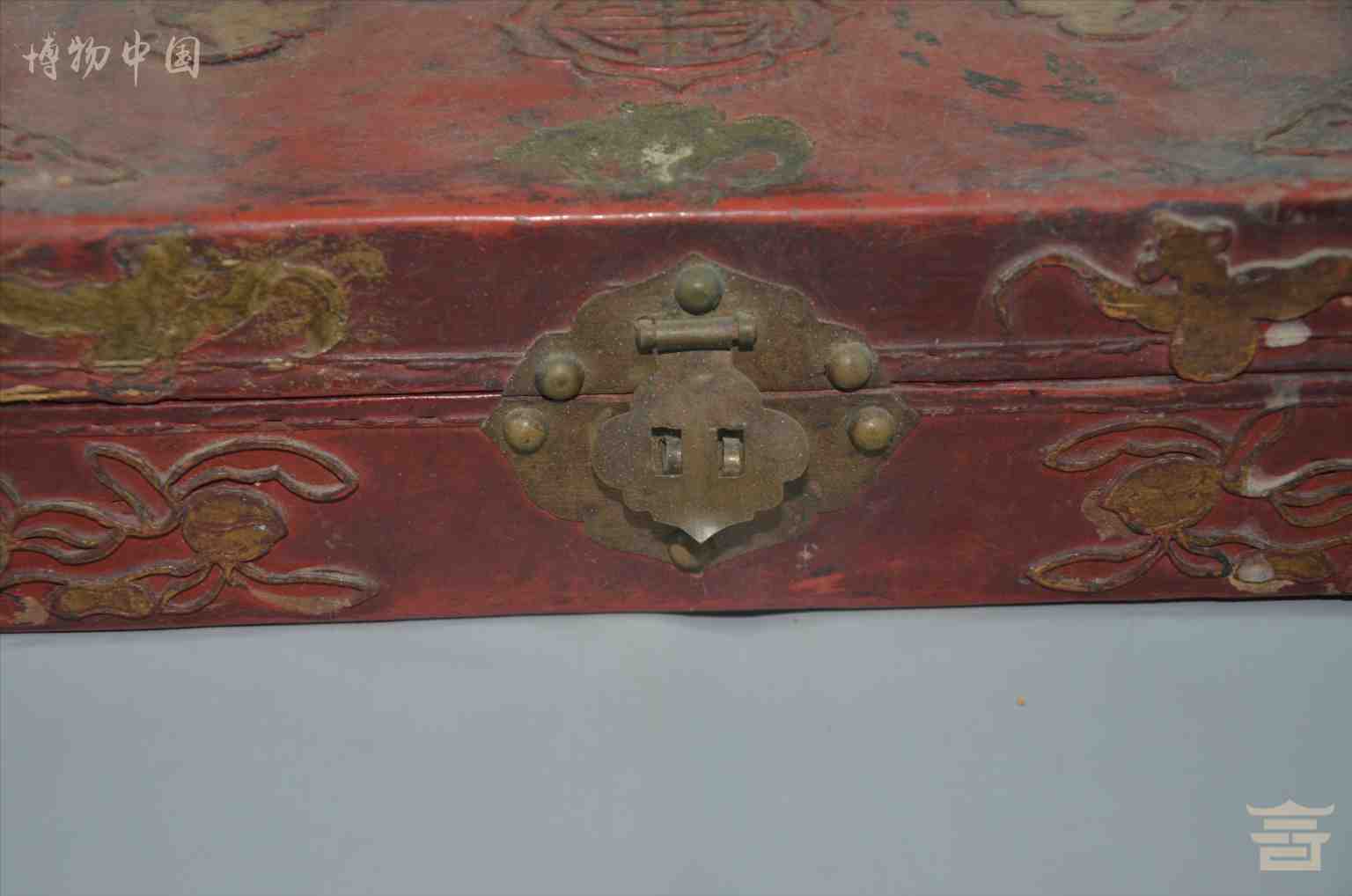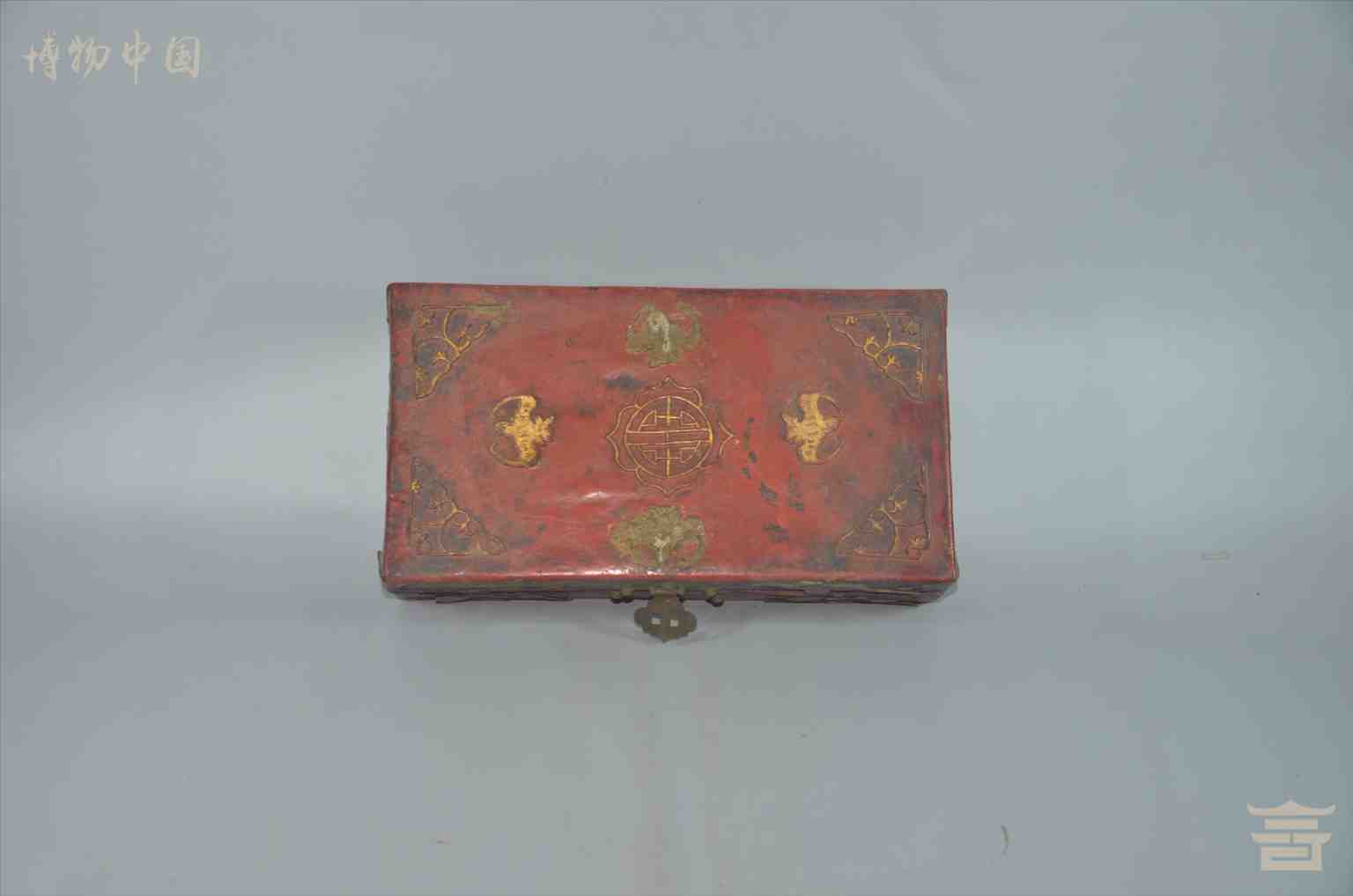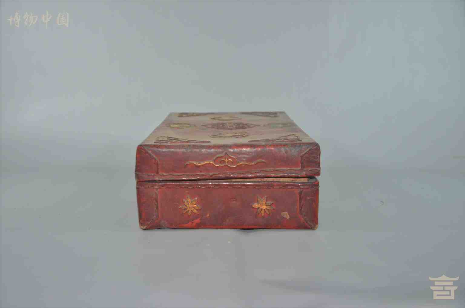 > 民国红漆蝠喜长方皮盒