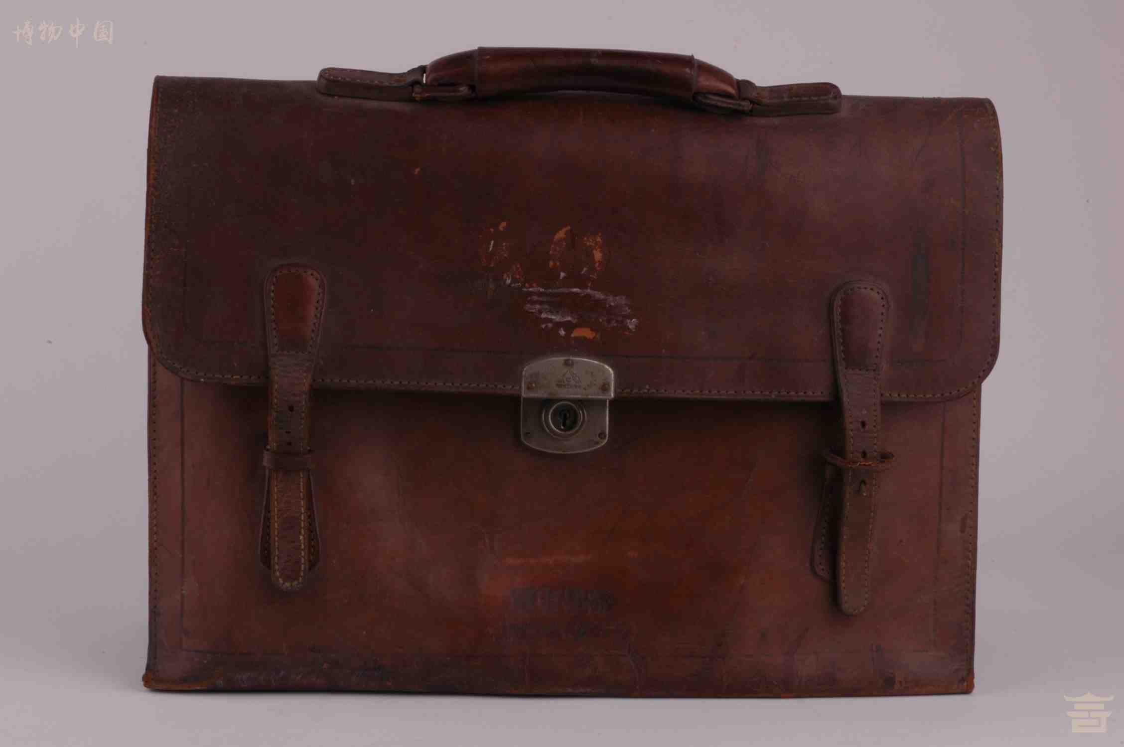 > 中华人民共和国方之中在中国解放军军事学院使用过的牛皮公文包