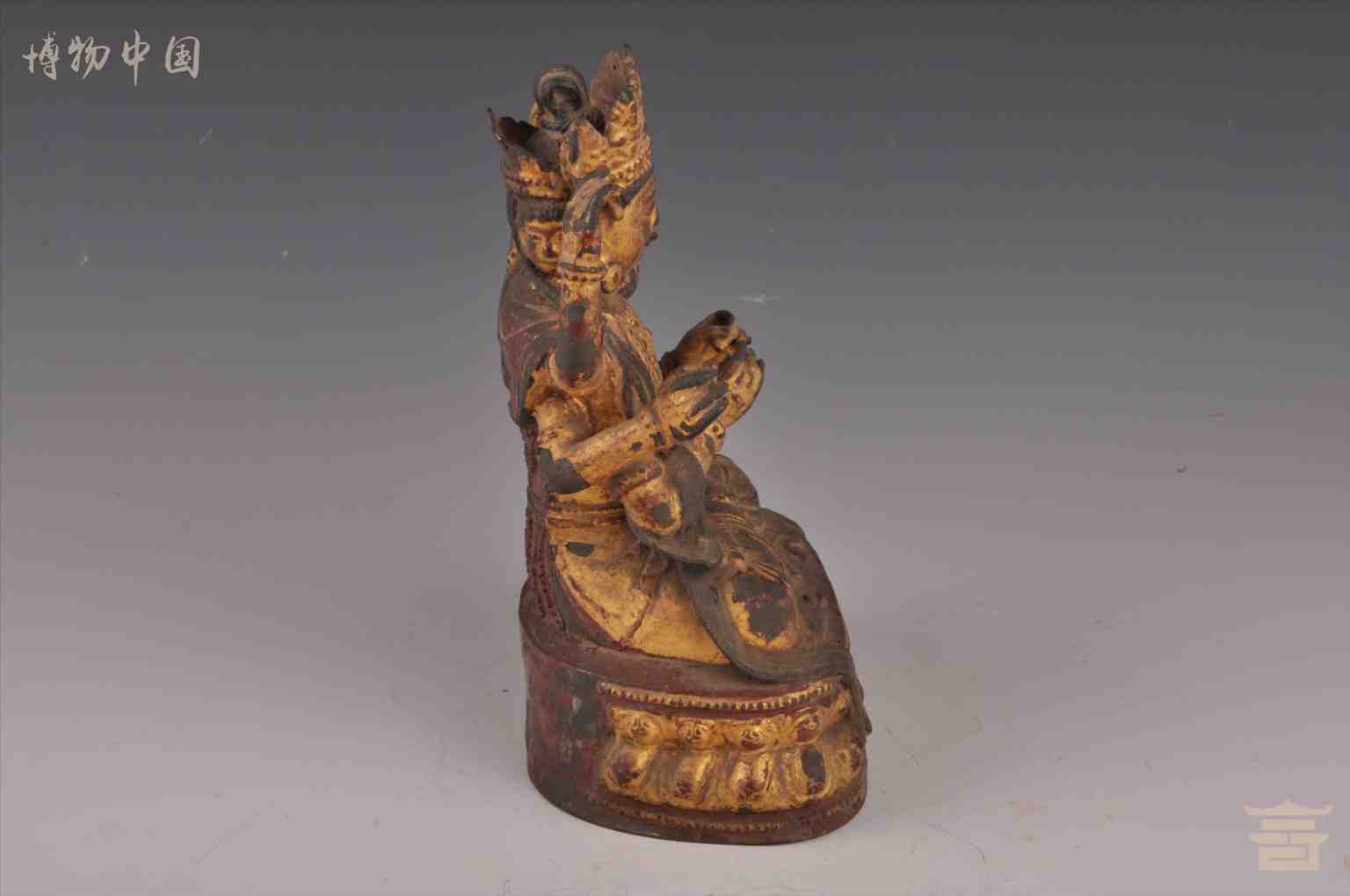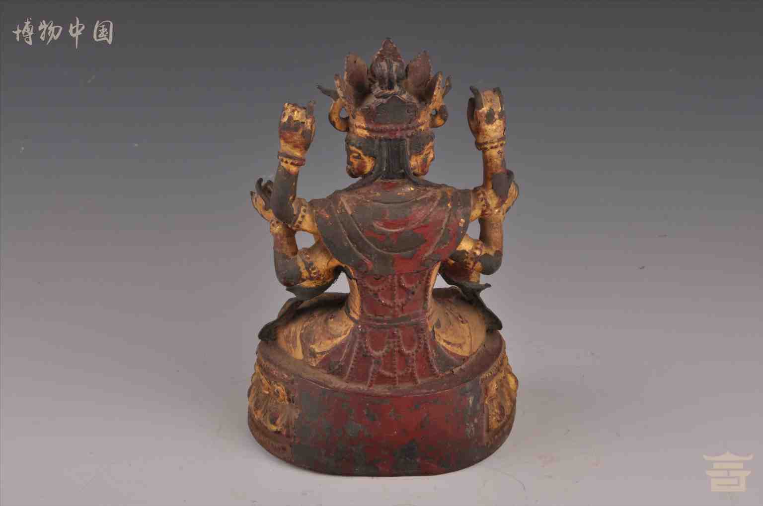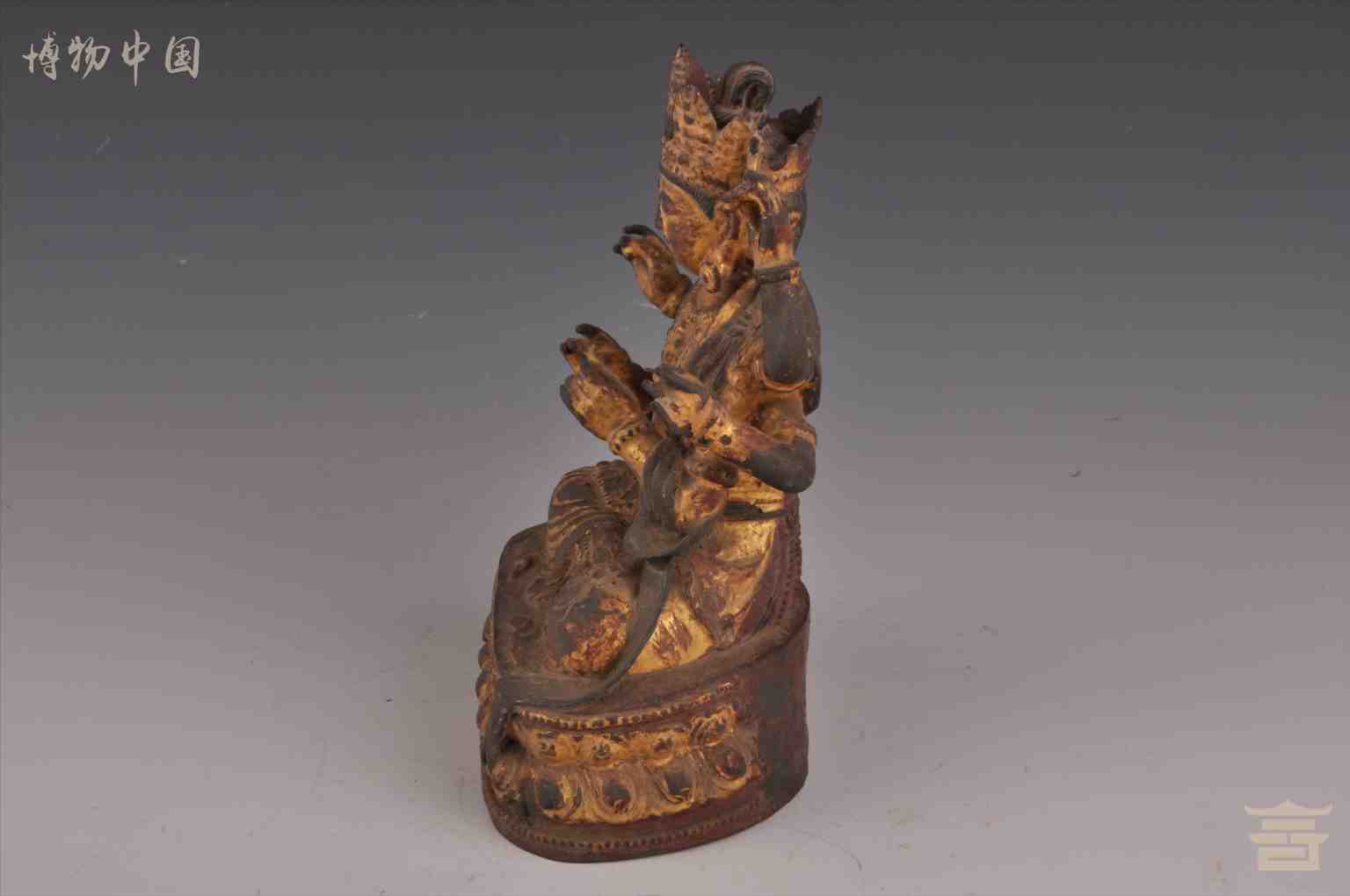 > 清鎏金三面六臂观音铜像