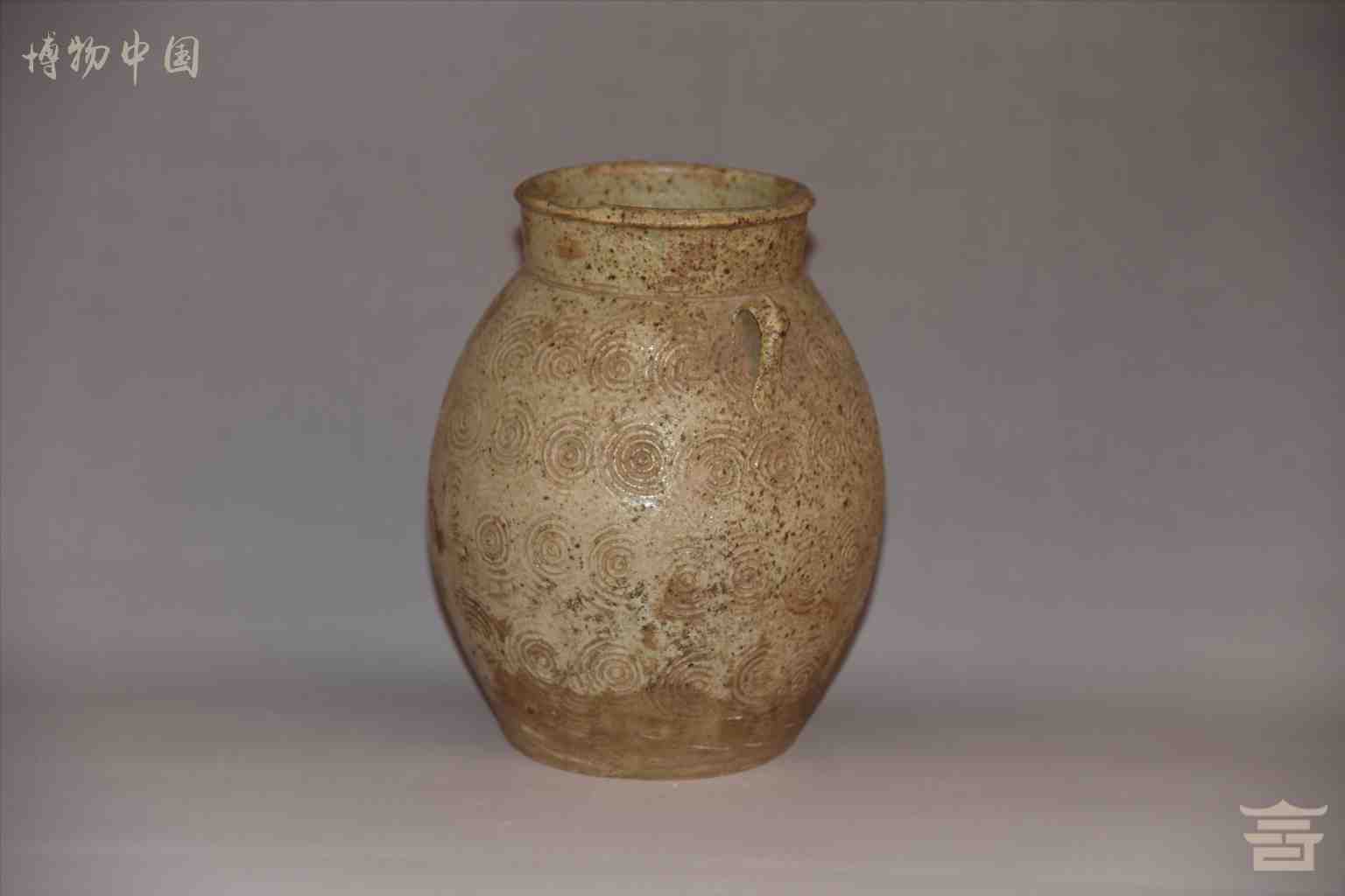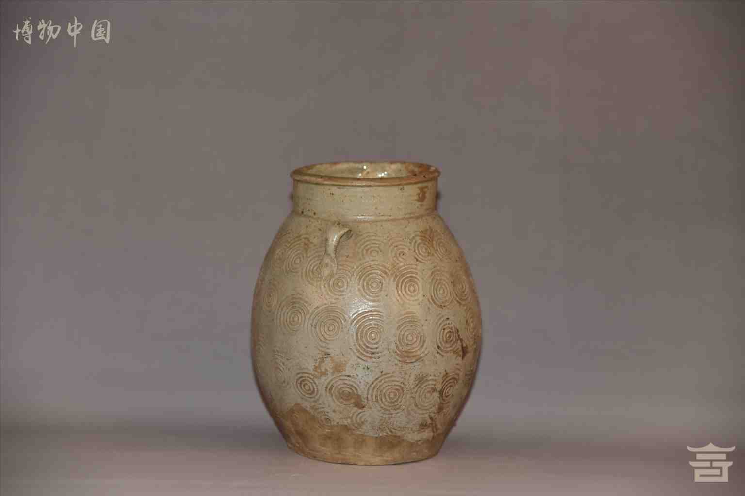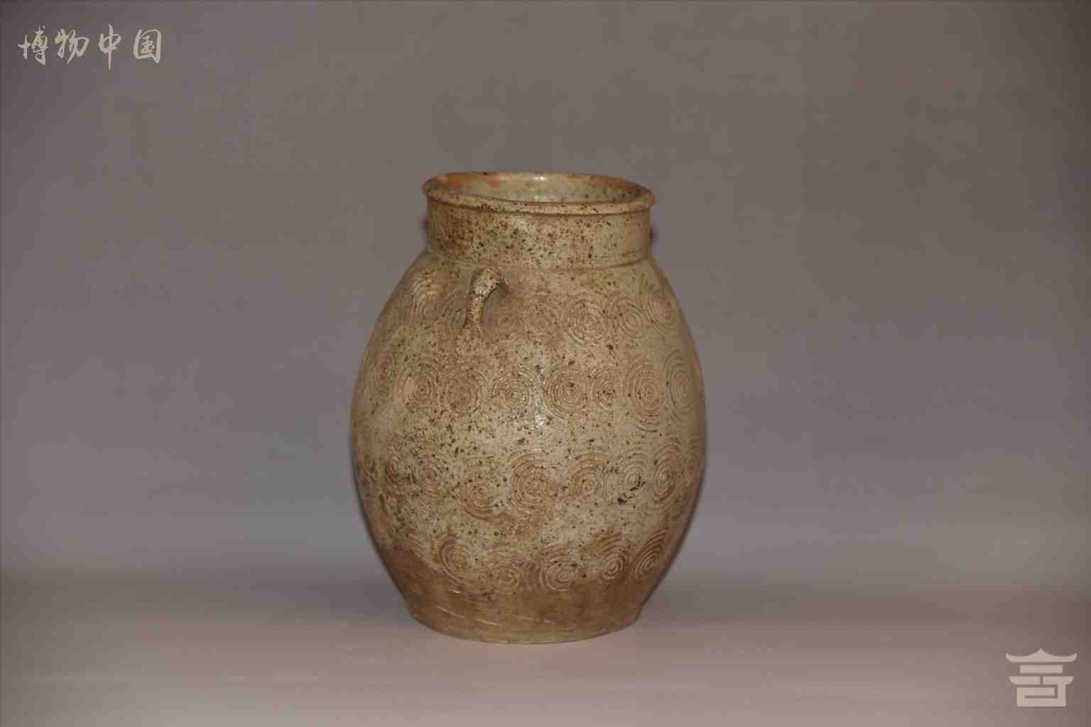 唐双耳鼓腹卷云纹青釉瓷罐