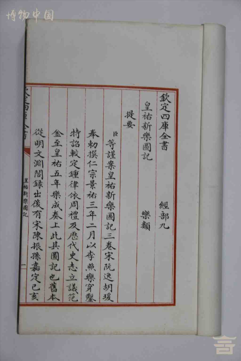 > 民国商务印书馆影印故宫博物院藏文渊阁本《钦定四库全书·经部·皇祐新乐图记卷》