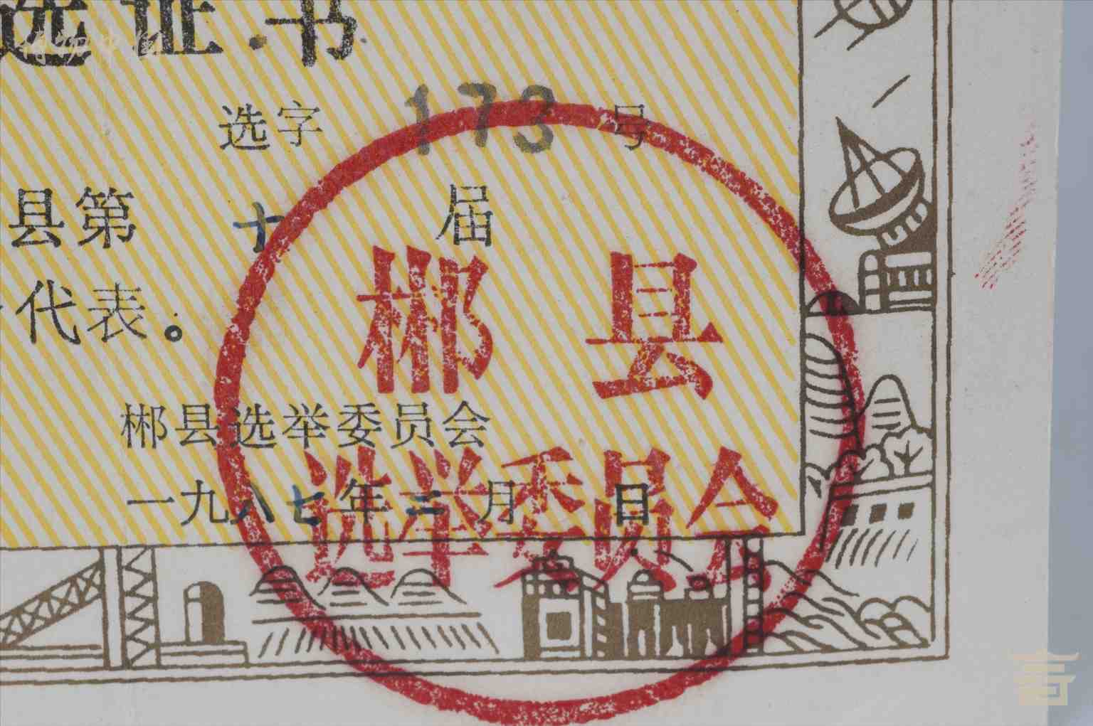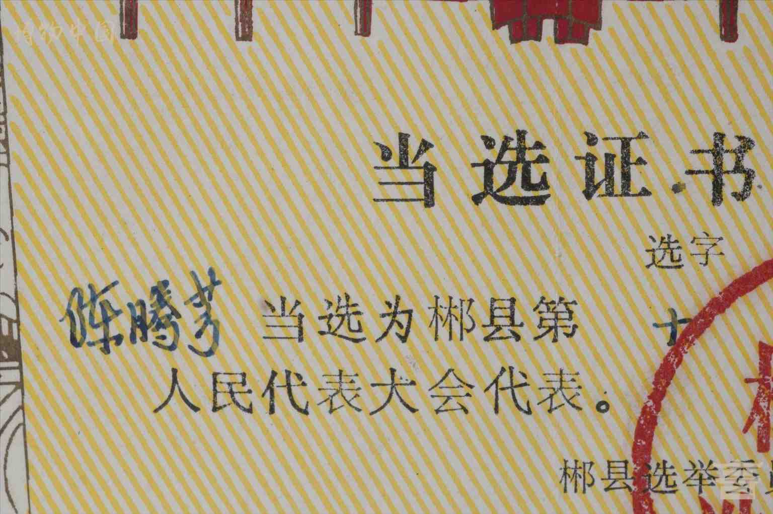 > 1987年陈腾芳的郴县十届人大代表当选证书