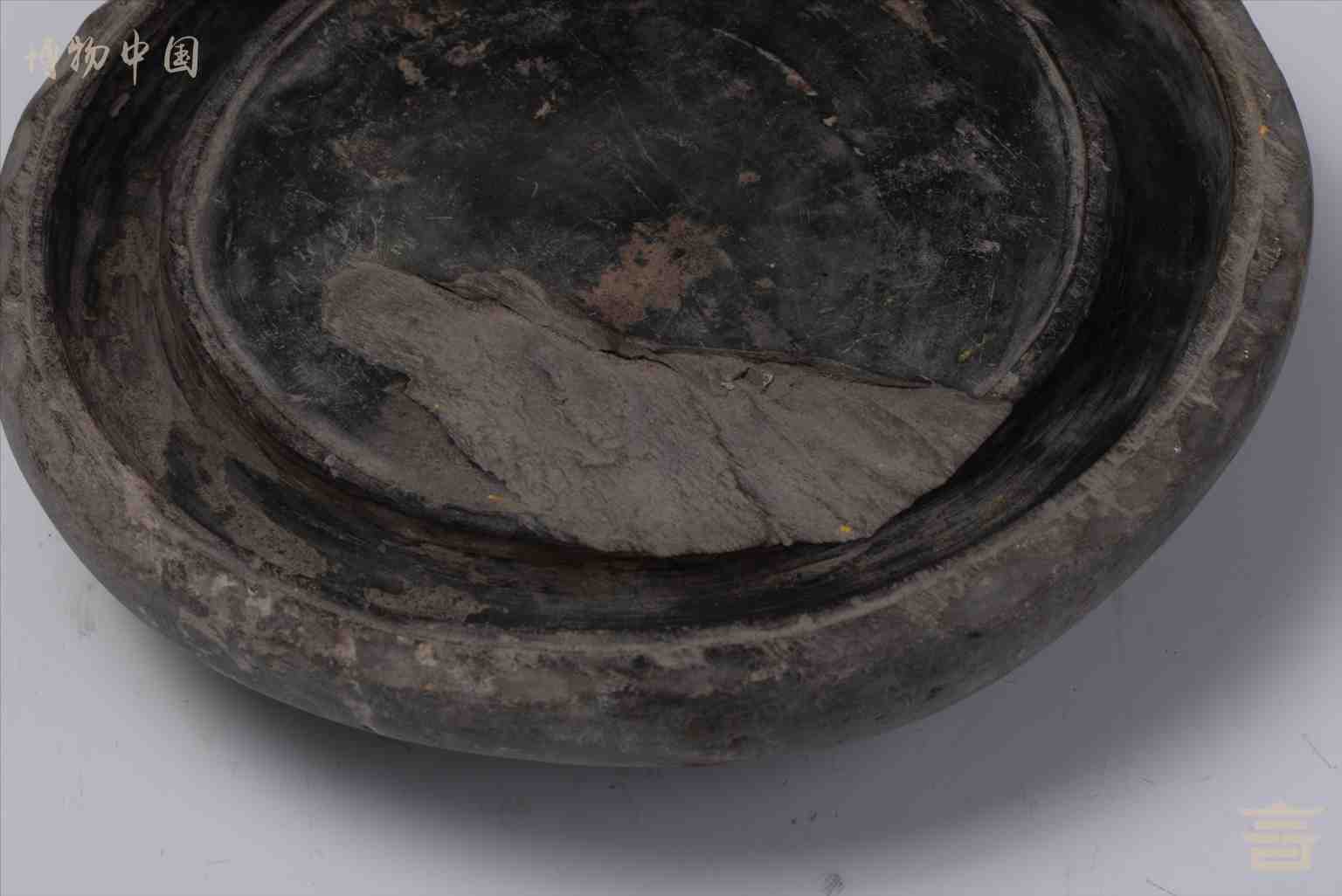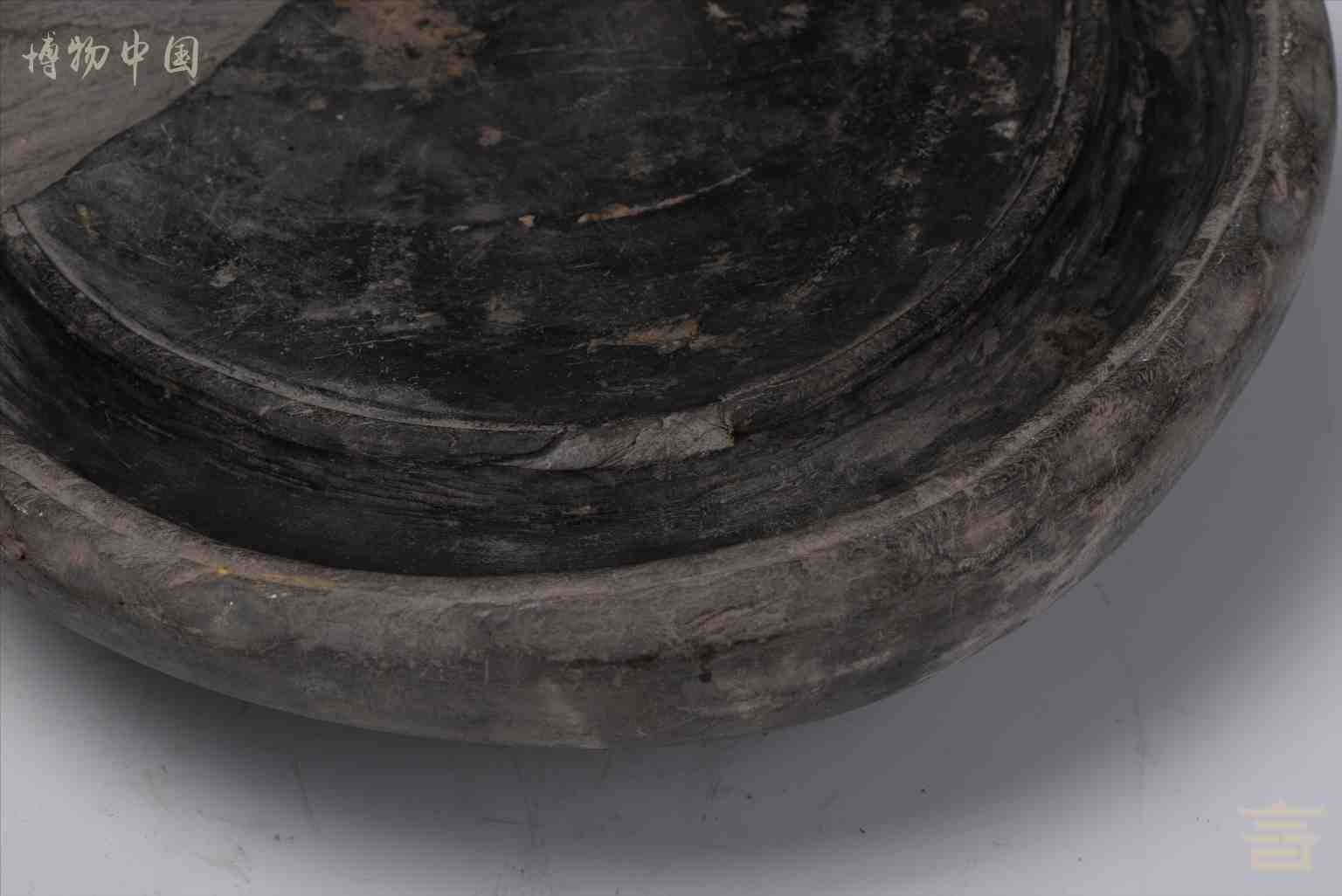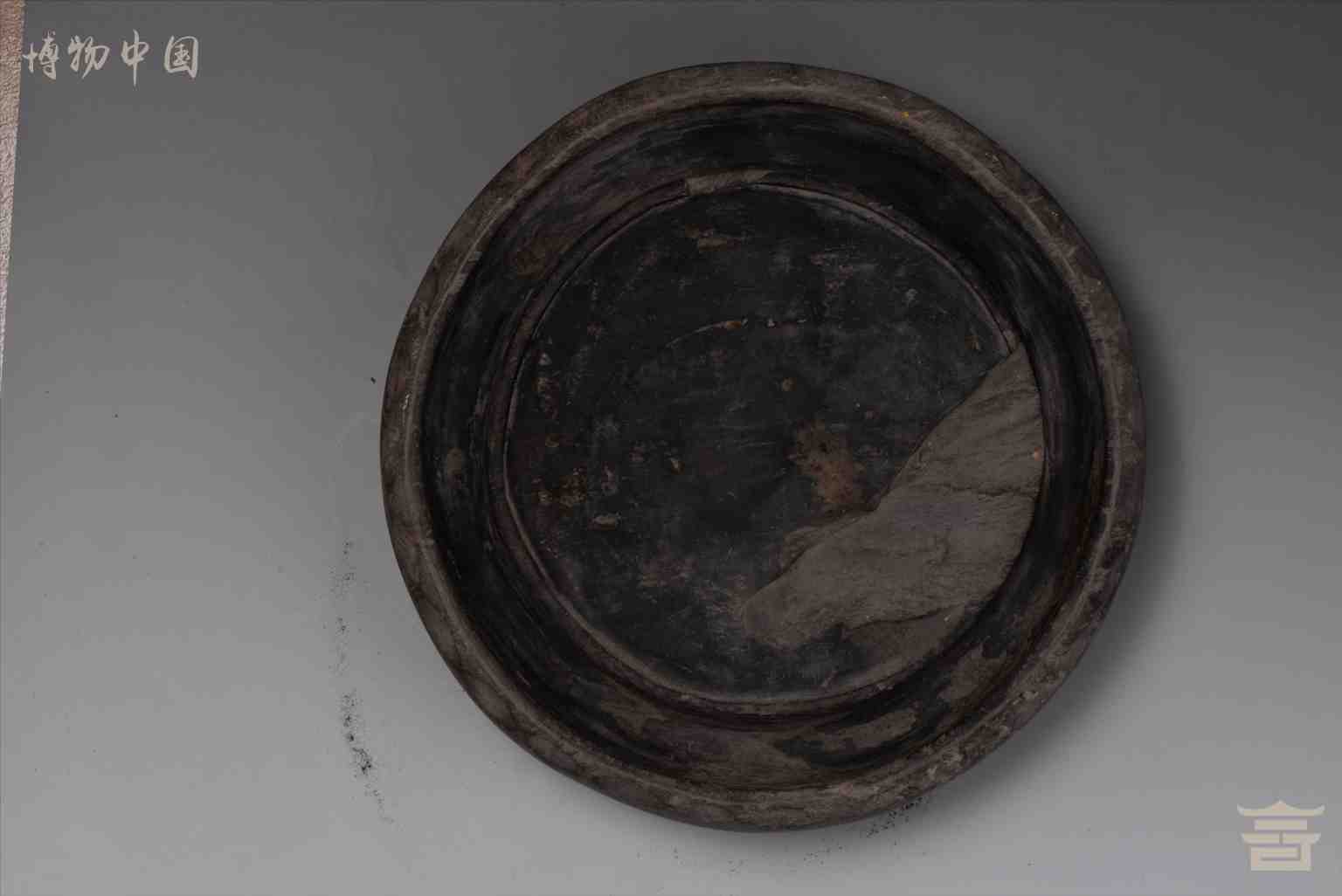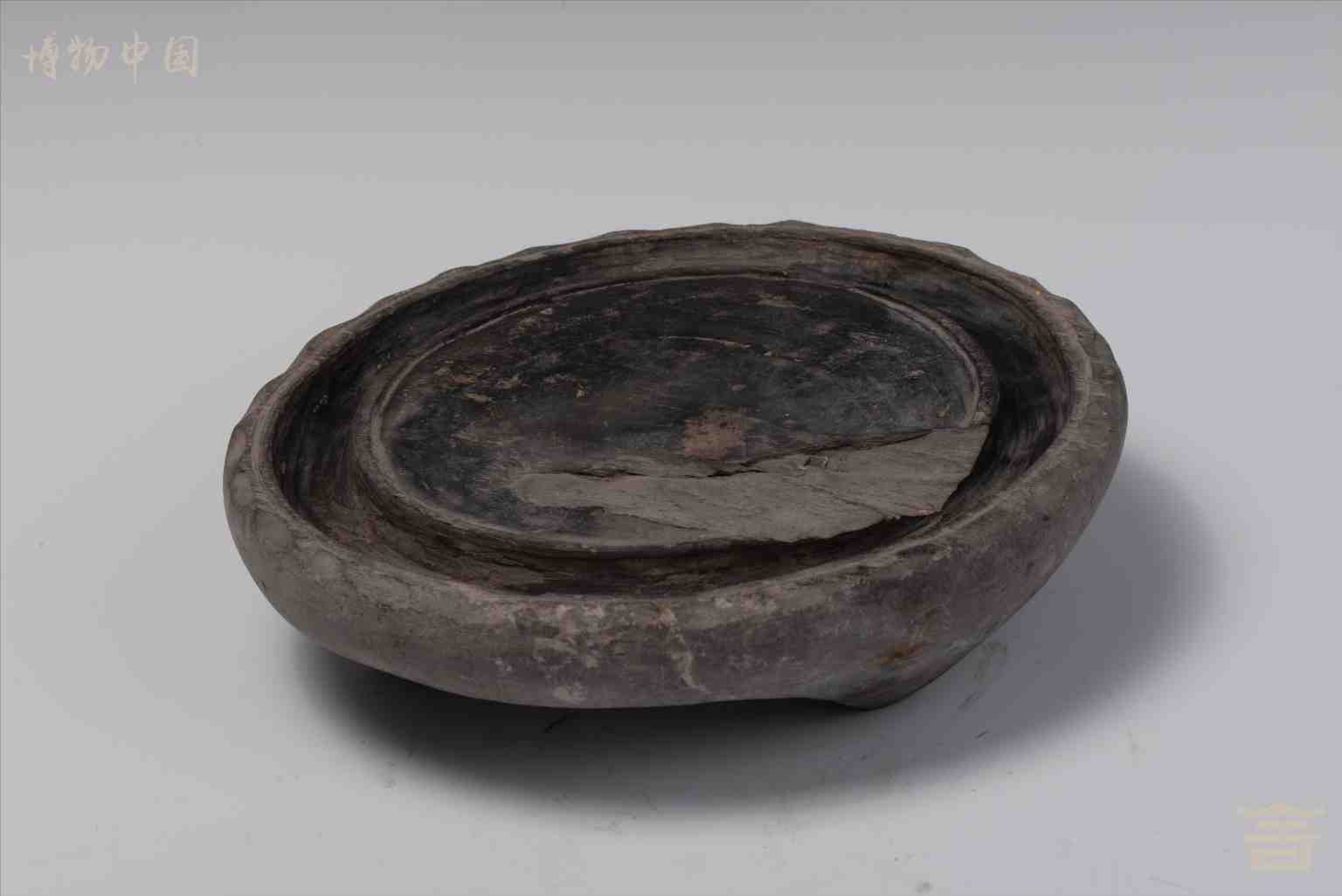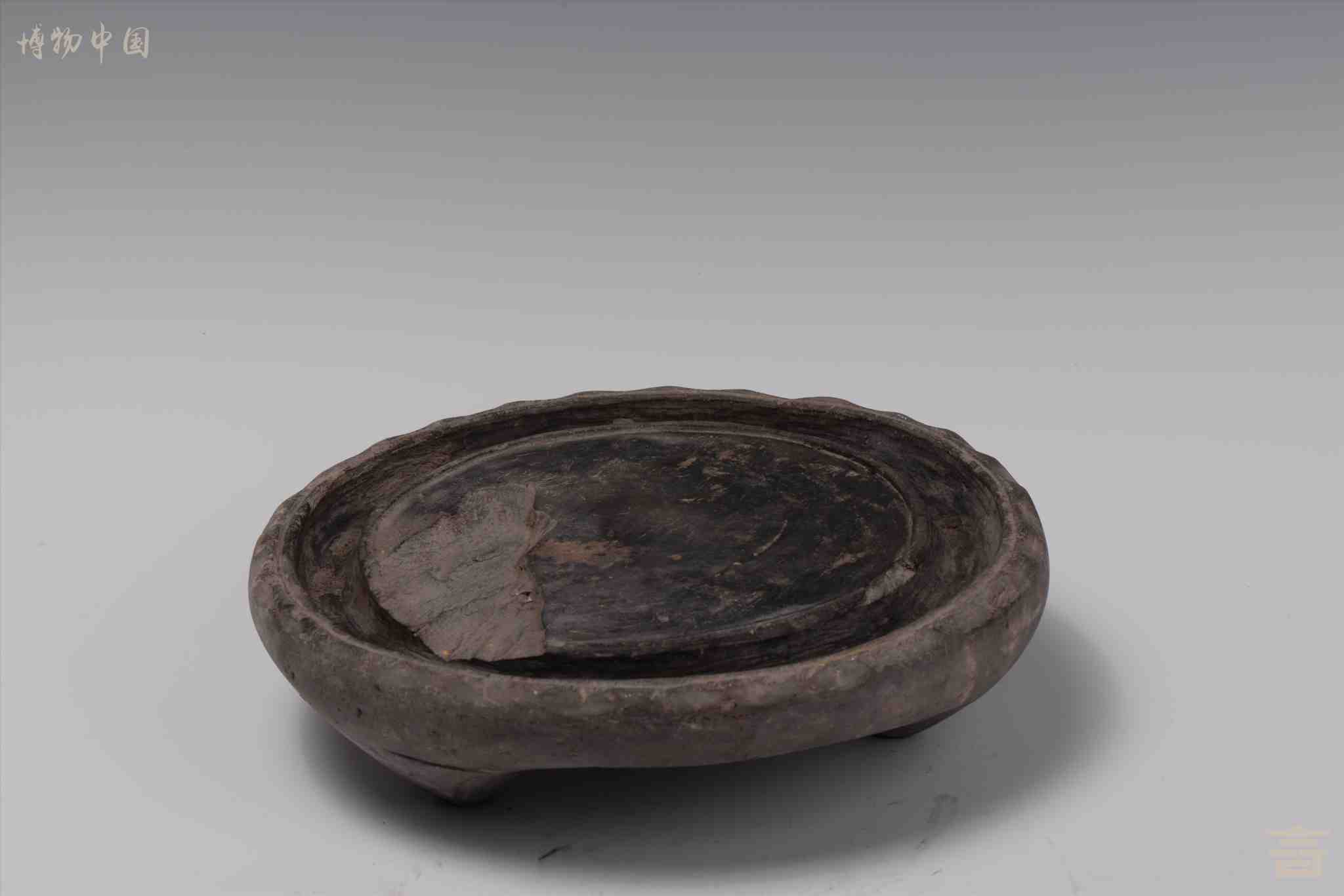 > 清三足圆形石砚