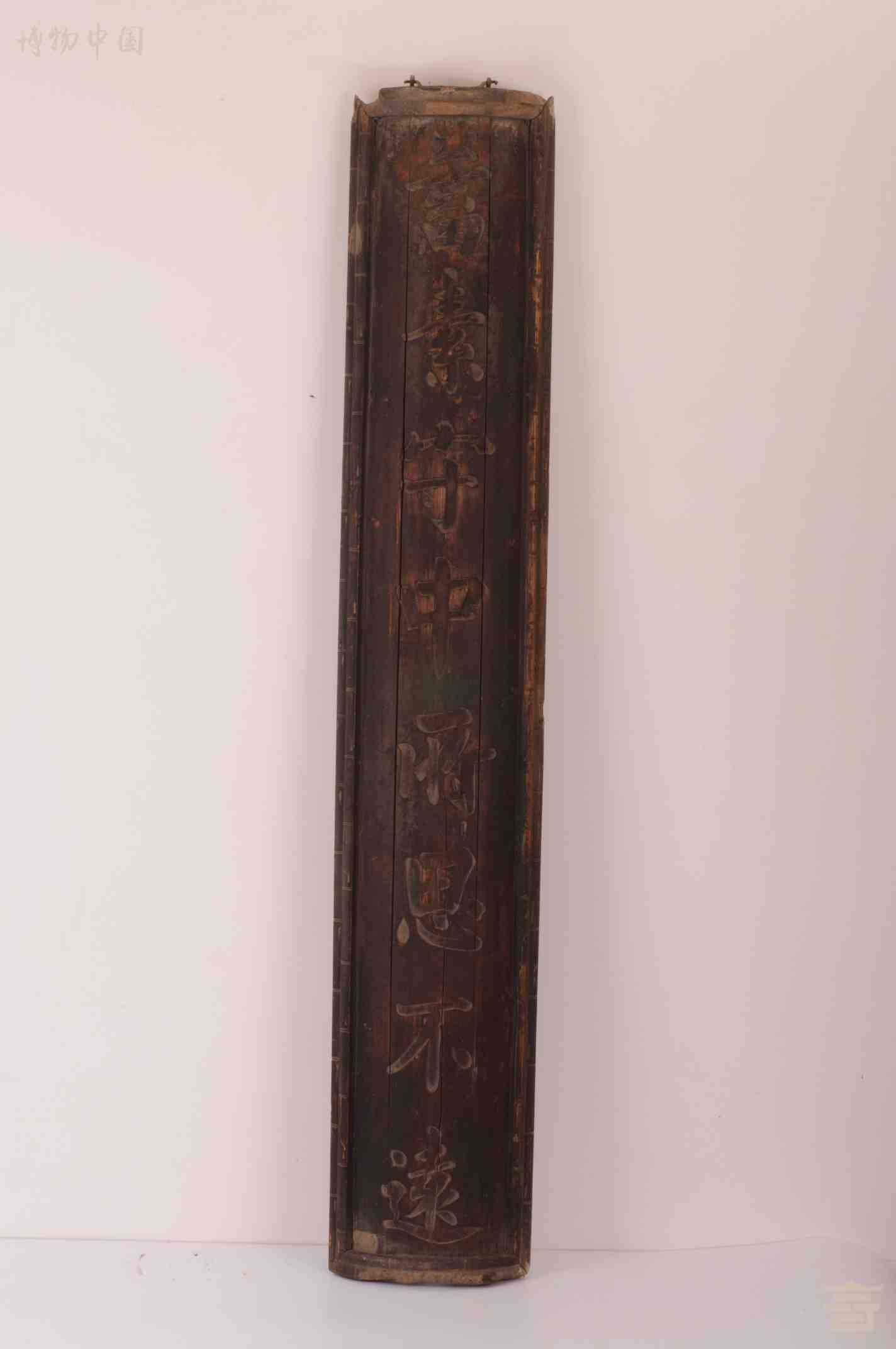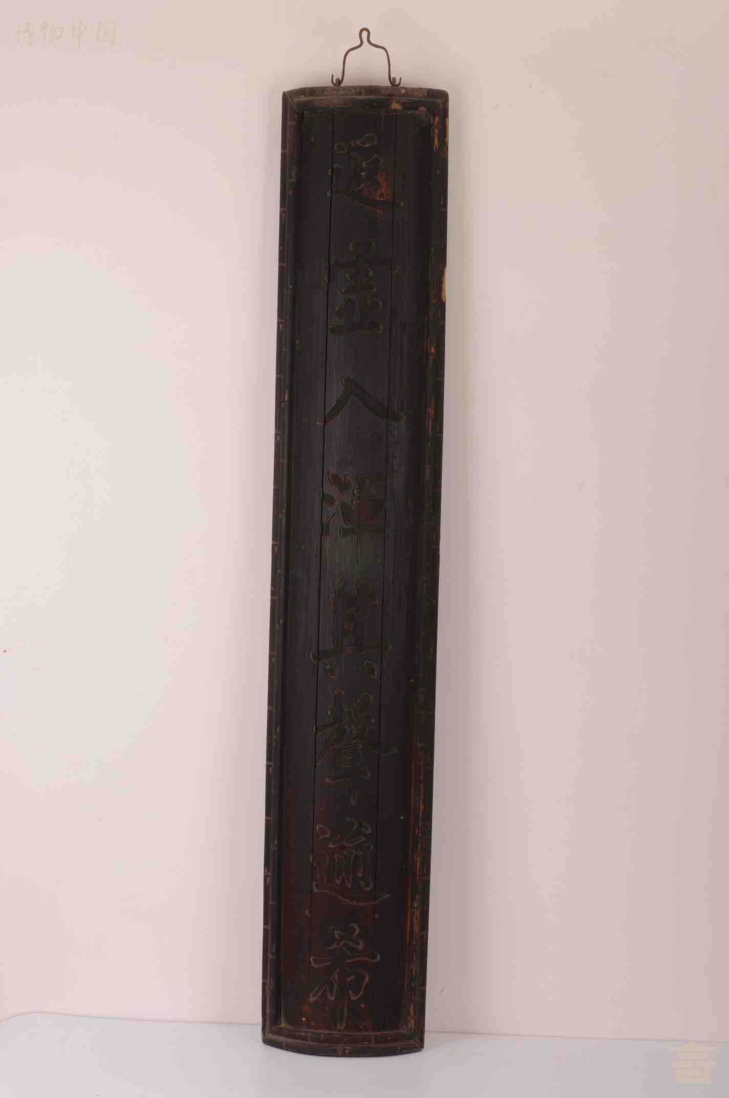 > 清刻楷书八言弧面木楹联