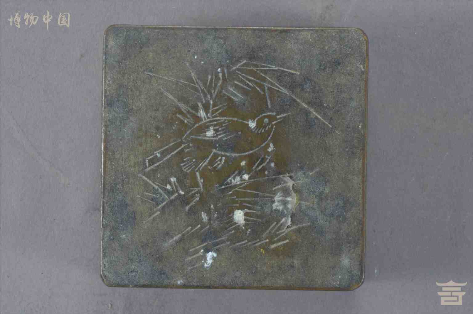 > 民国花鸟纹方形铜墨盒