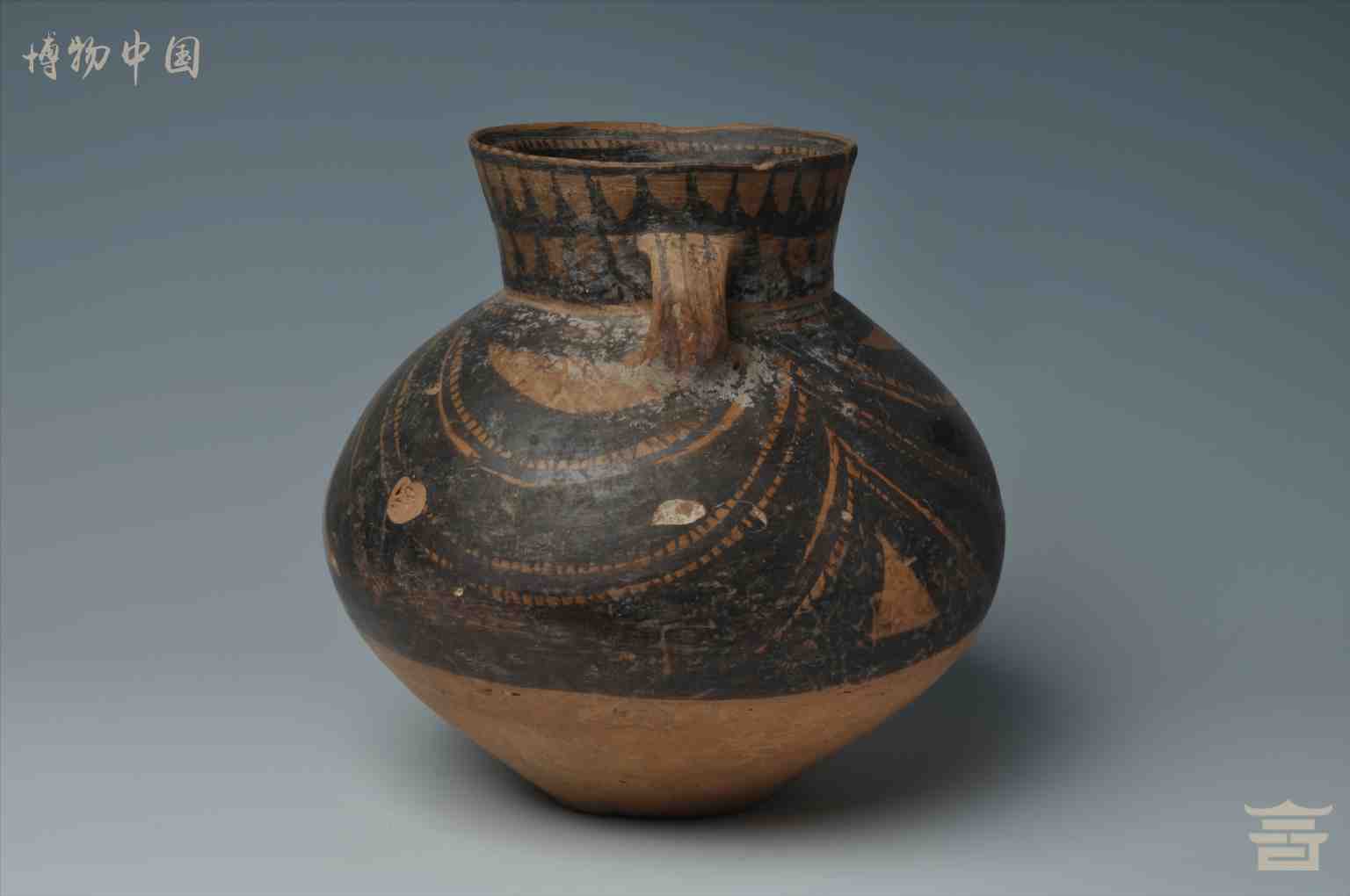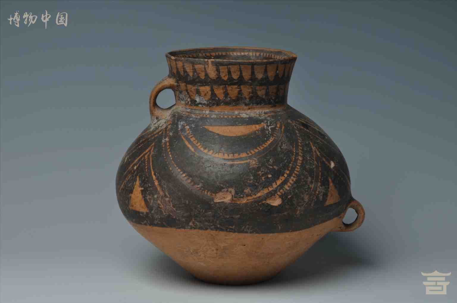 > 新石器时代马家窑文化半山类型弧线锯齿纹彩陶罐