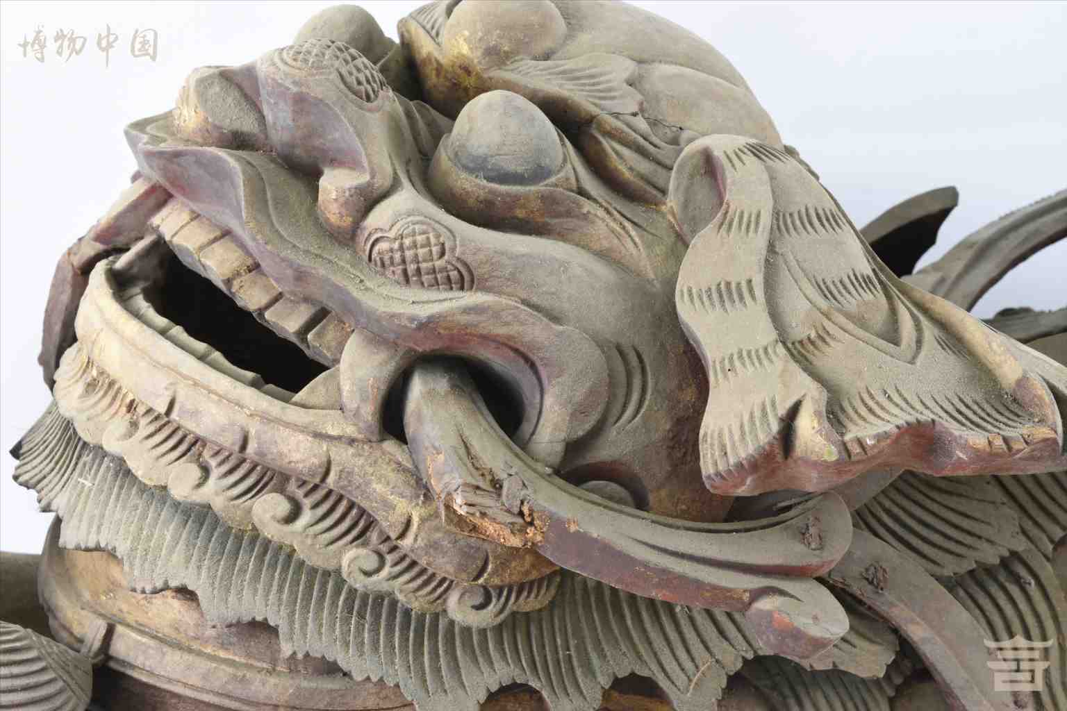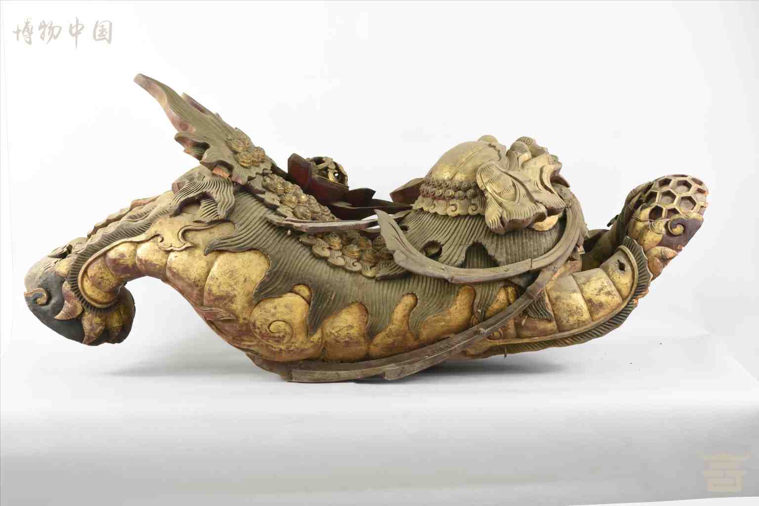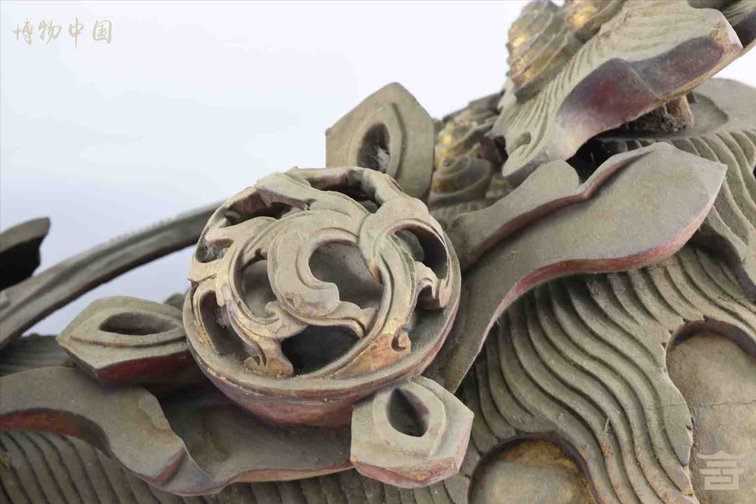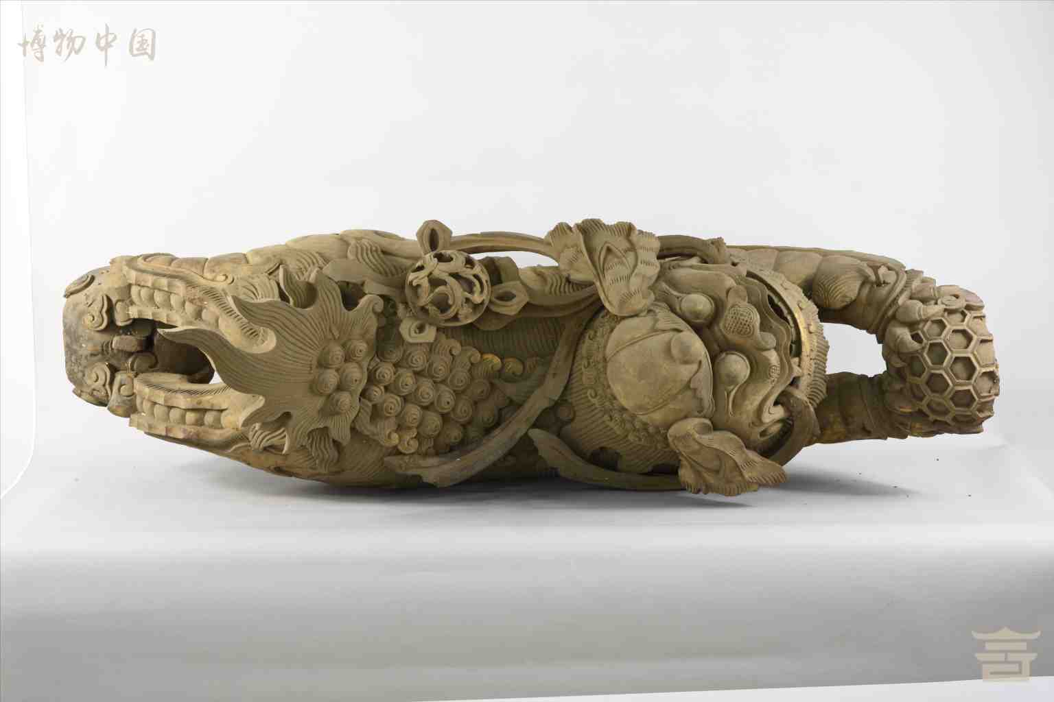 > 清涂金圆雕狮子戏球木雀替