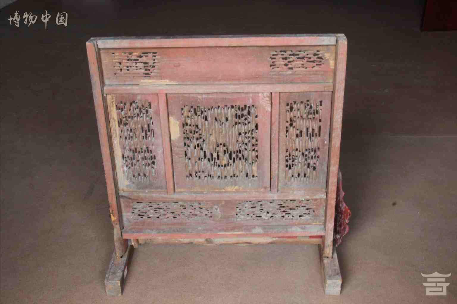 清镀金镂空二龙戏珠纹颖川堂木桌屏