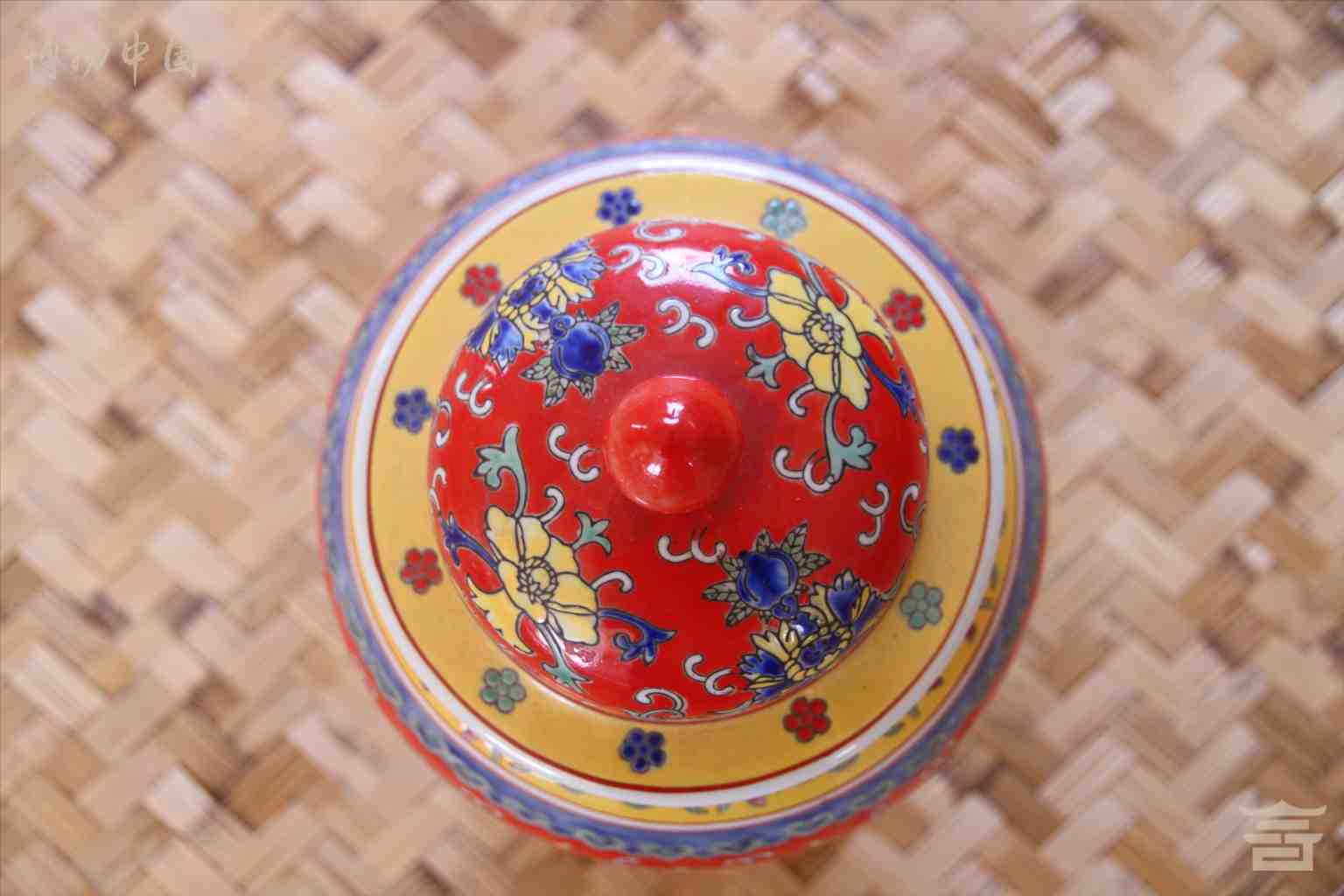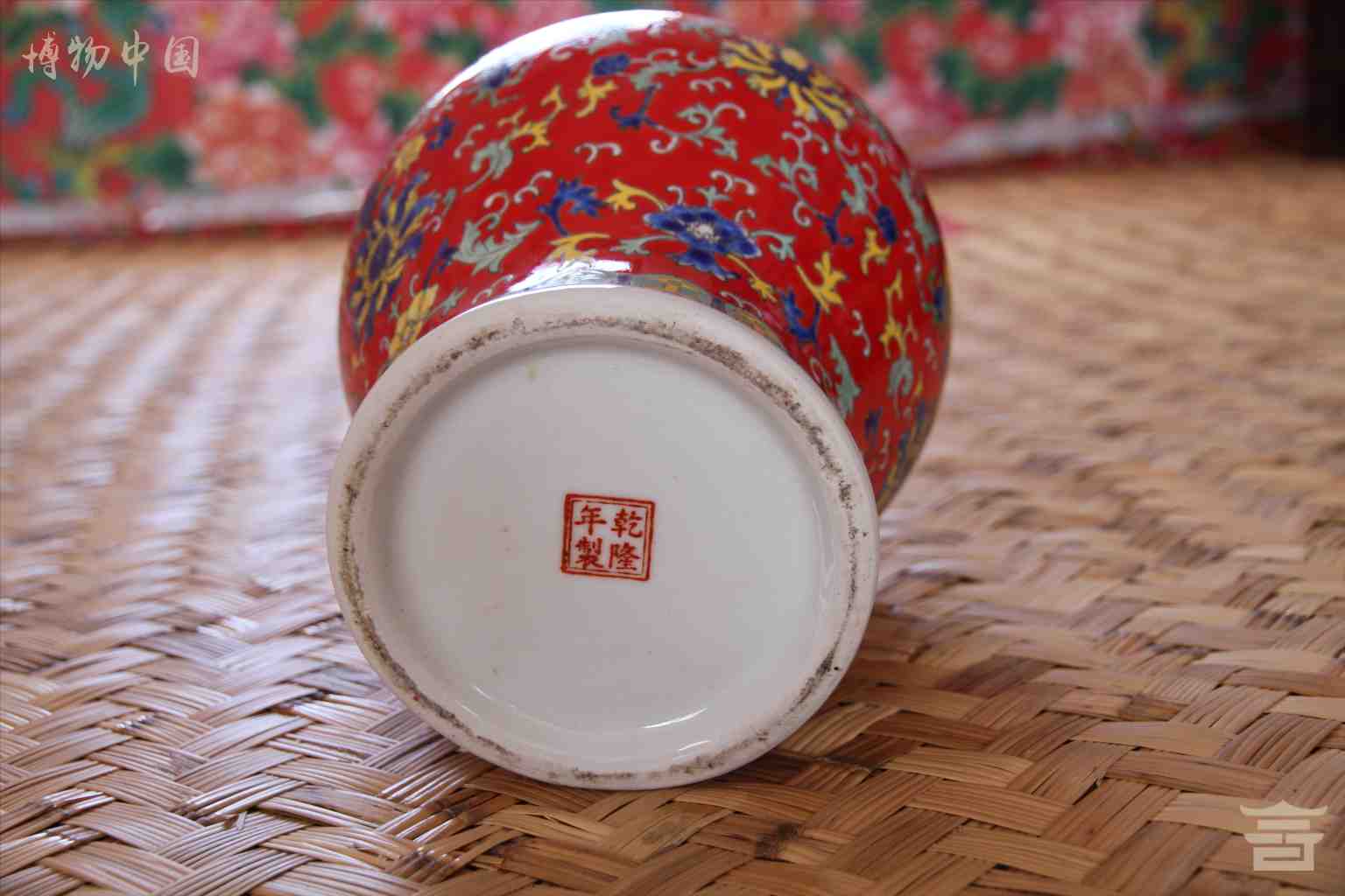 > 清乾隆珊瑚红地粉彩花卉将军瓷罐