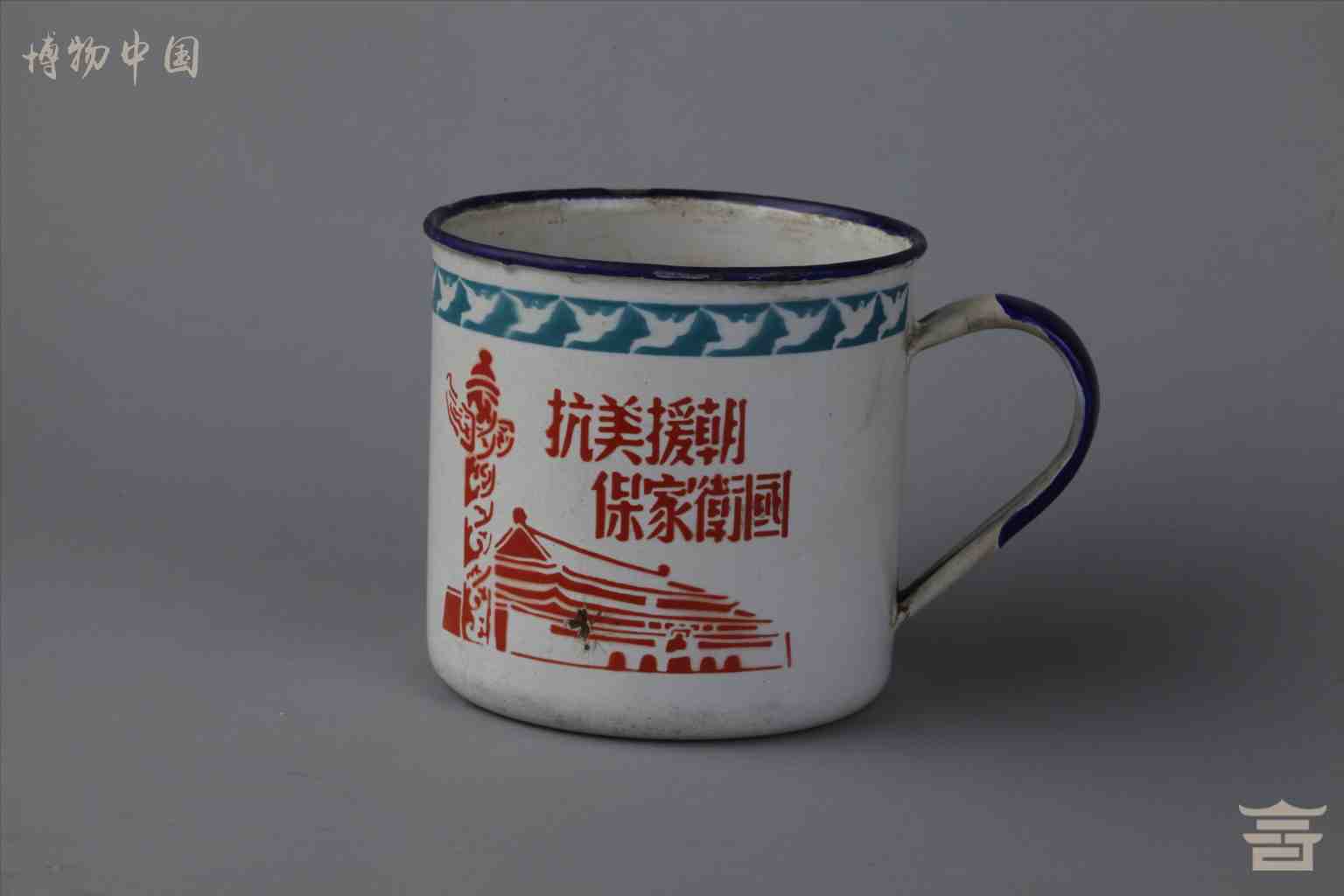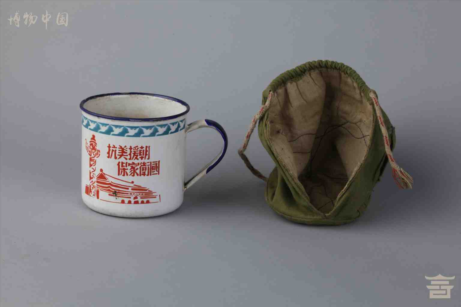 > 1952年“抗美援朝、保家卫国”搪瓷茶缸及布套