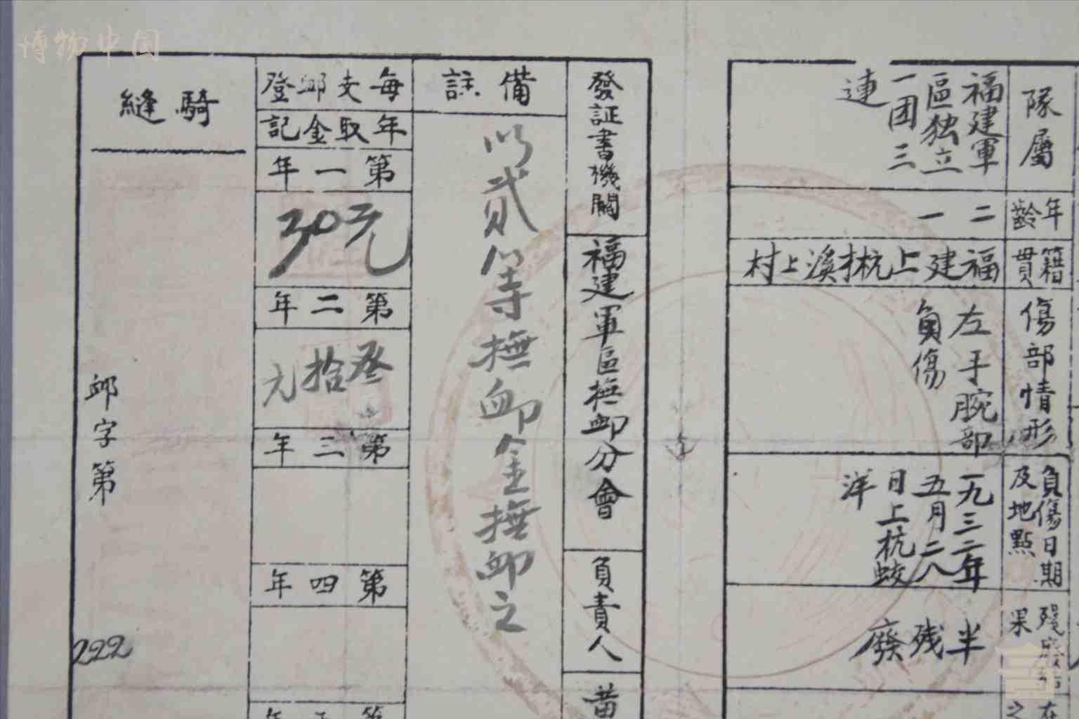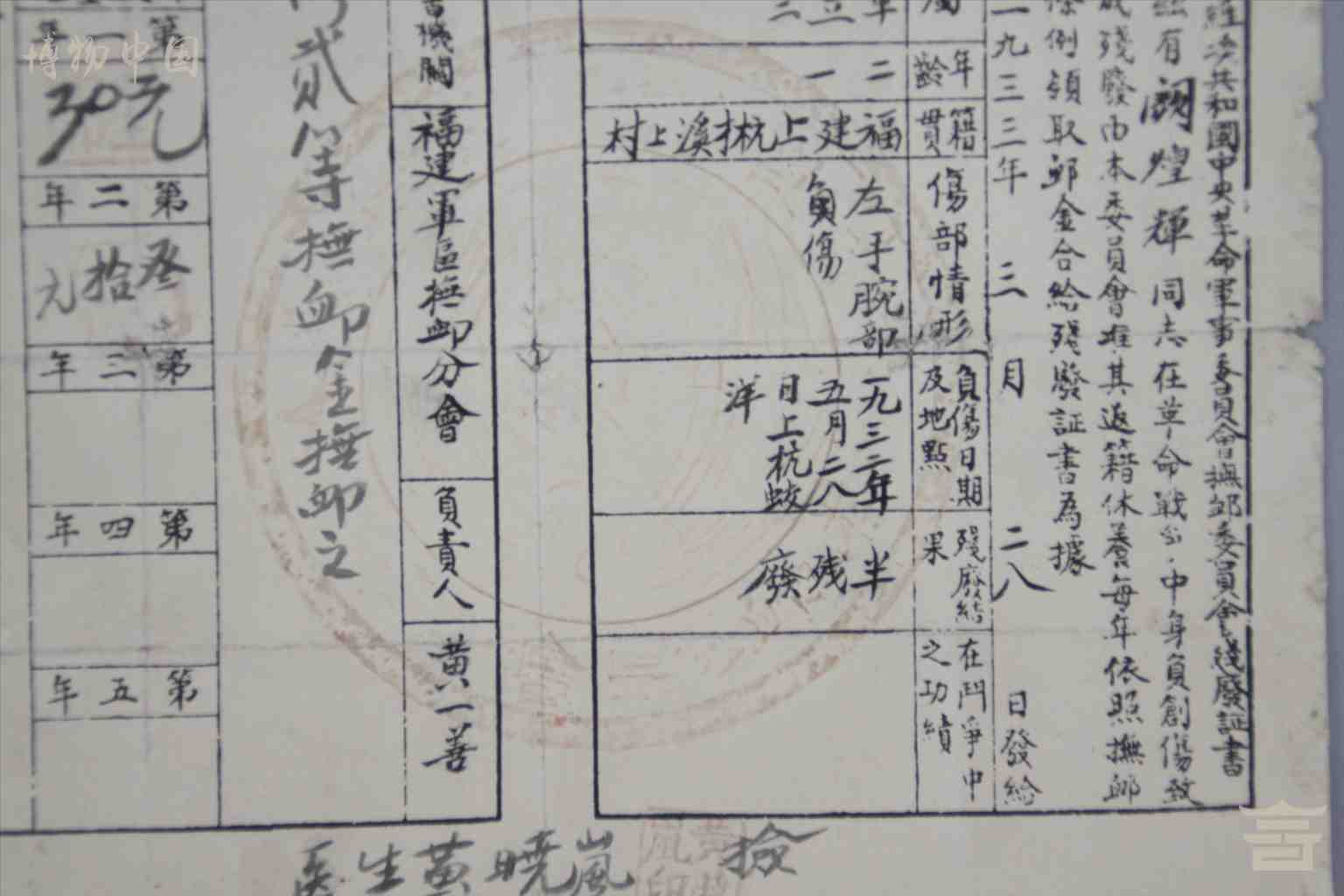 > 1933年3月28日阙煌辉的残废证书