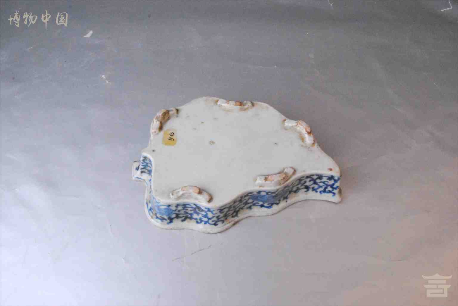 > 清青花缠枝莲纹瓷五足洗
