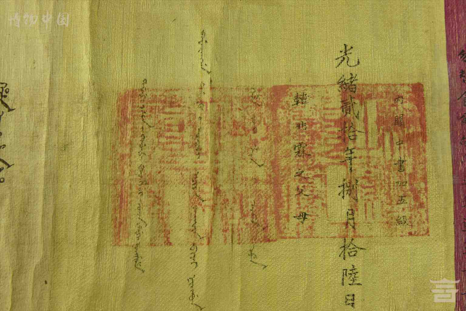 > 清光绪二十年敕封内阁中书韩兆霖父母织锦诰命