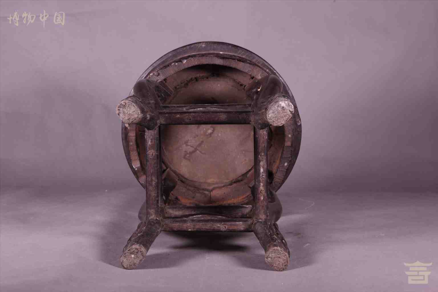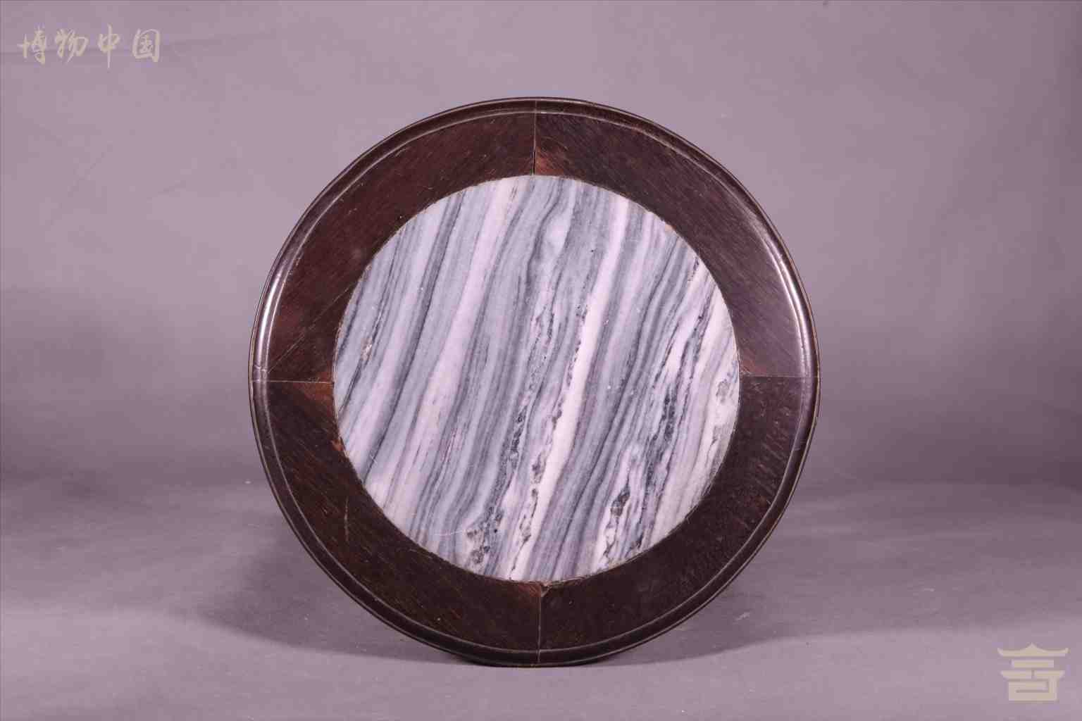 > 中华民国雕花酸枝木嵌大理石圆凳