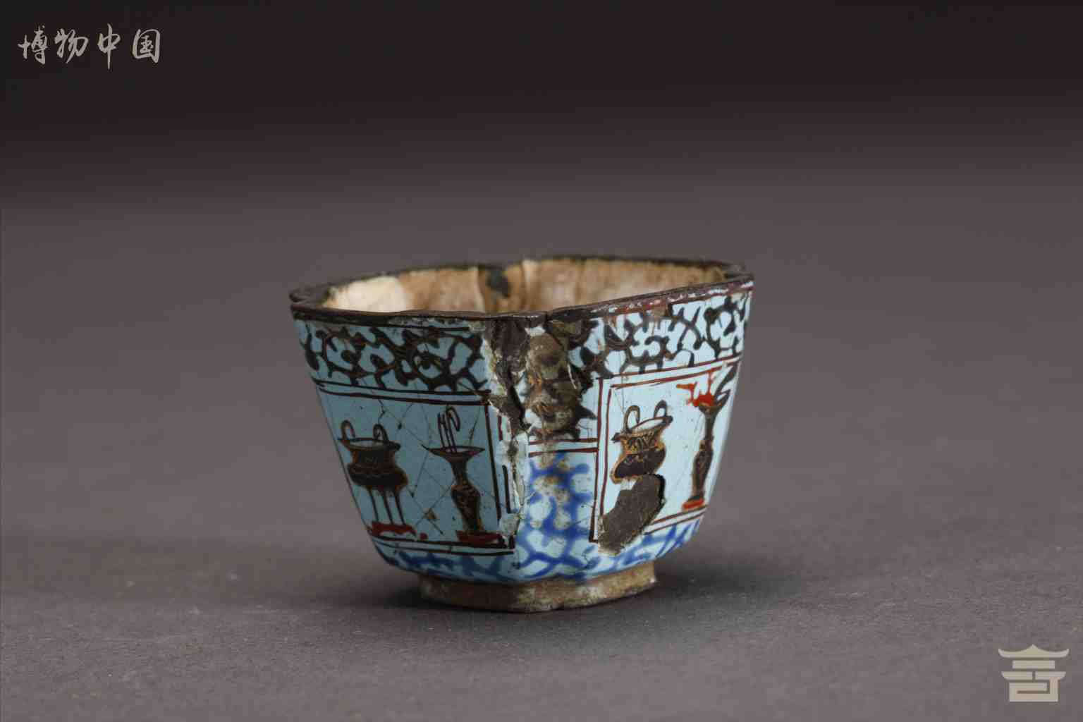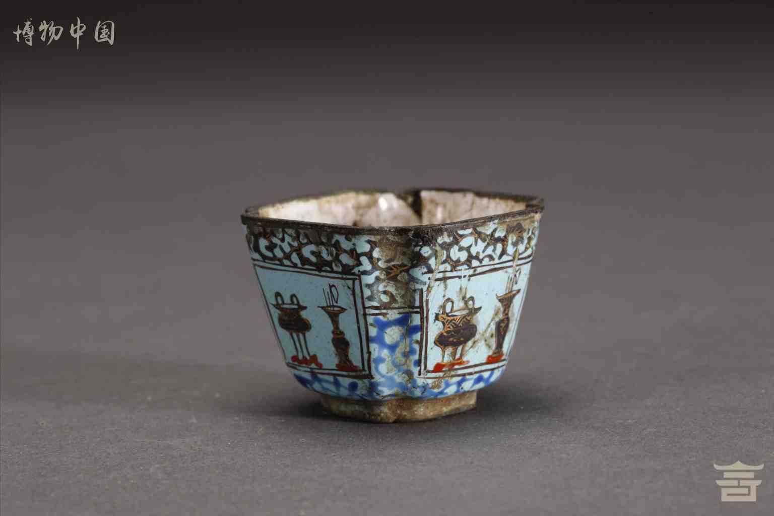 清铜胎掐丝珐琅博古纹瓷小杯