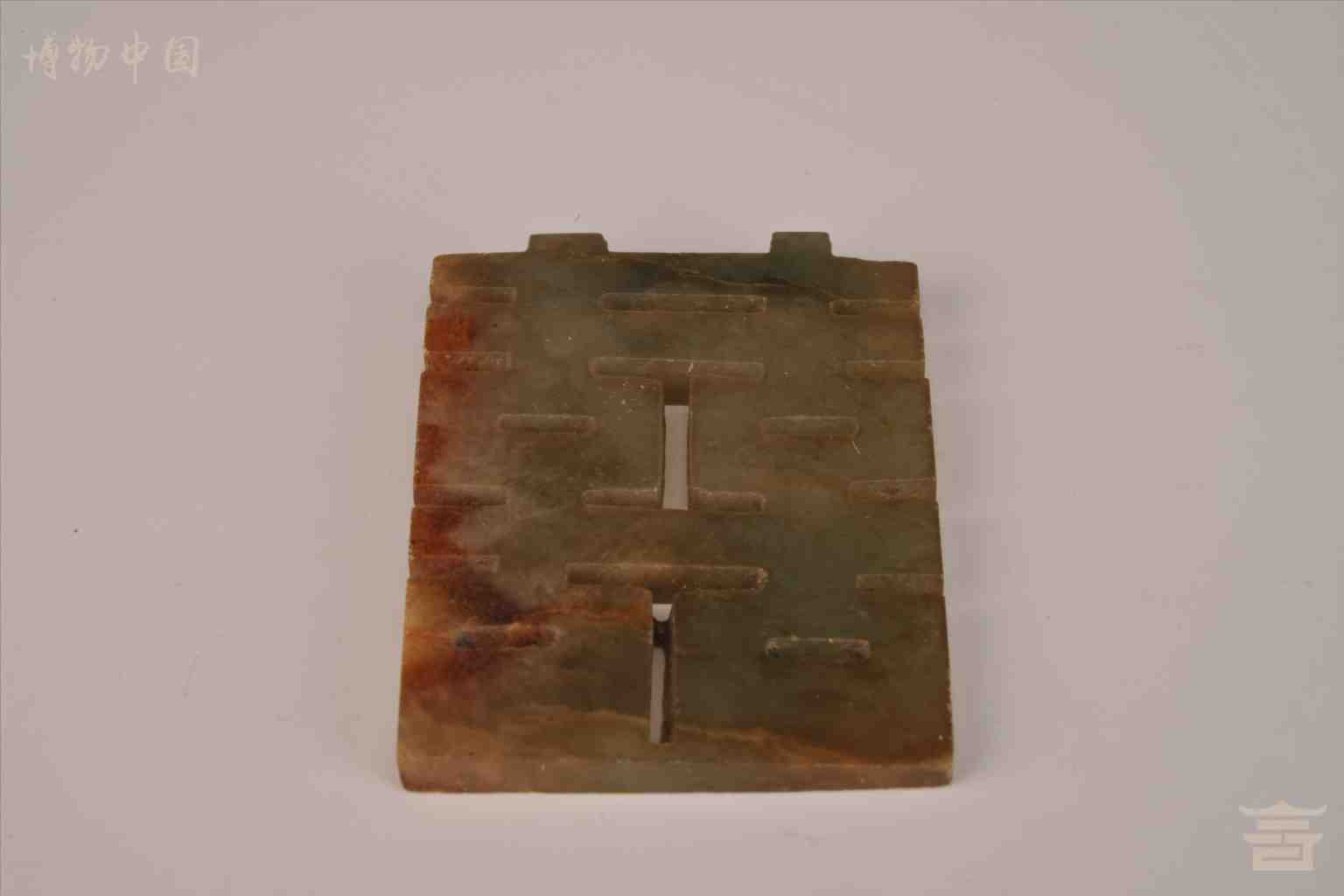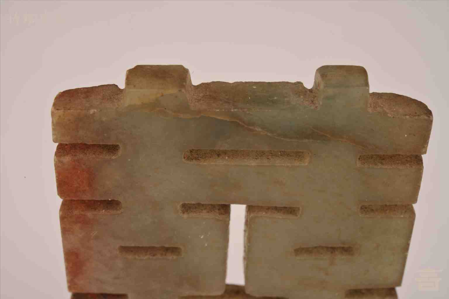 > 民国深绿带褐色方形玉双喜