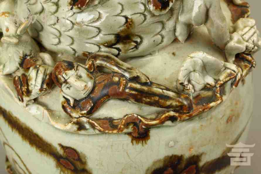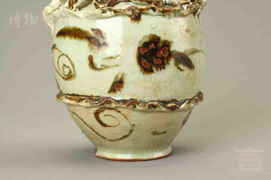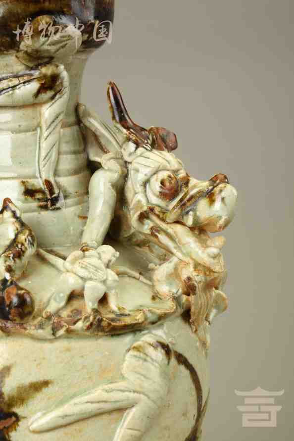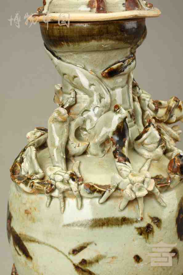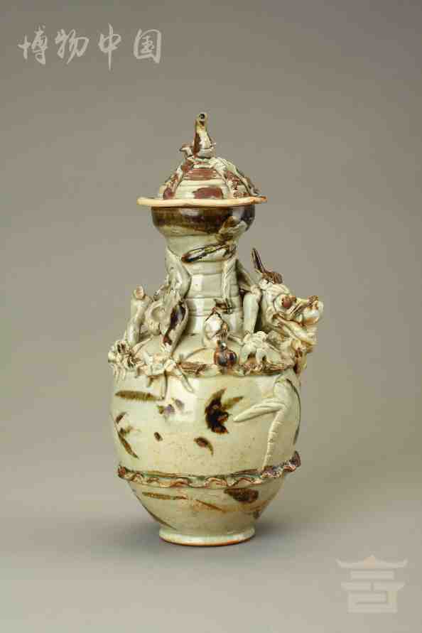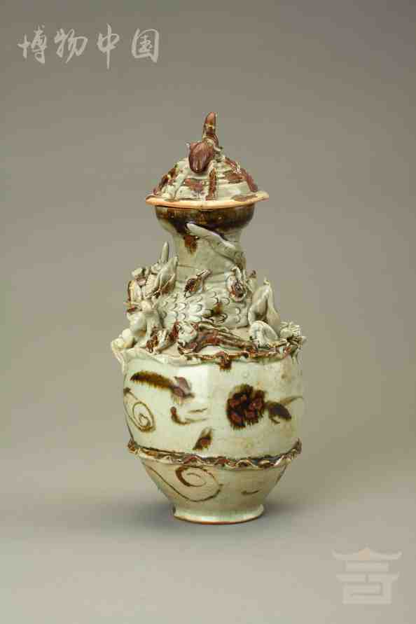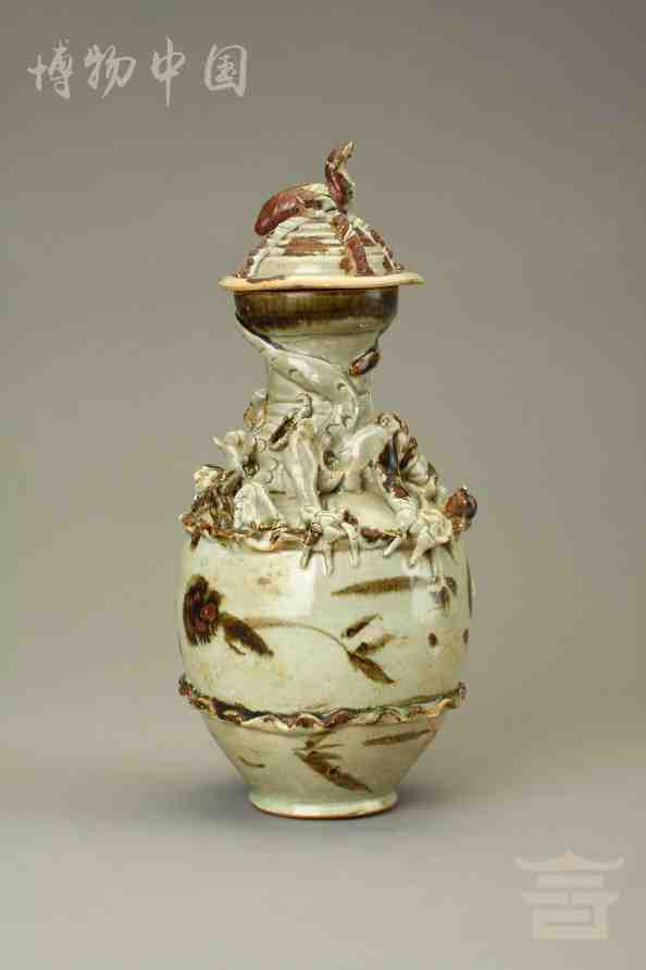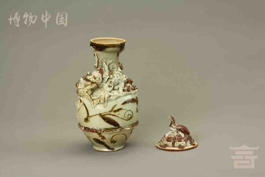 > 宋青釉褐彩堆帖蟠龙盖瓶