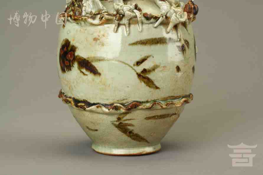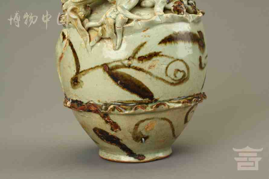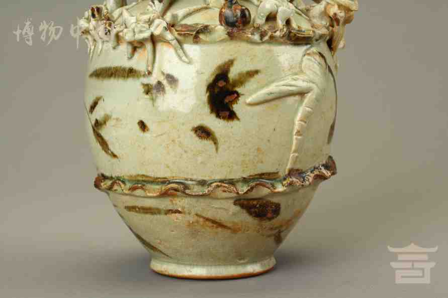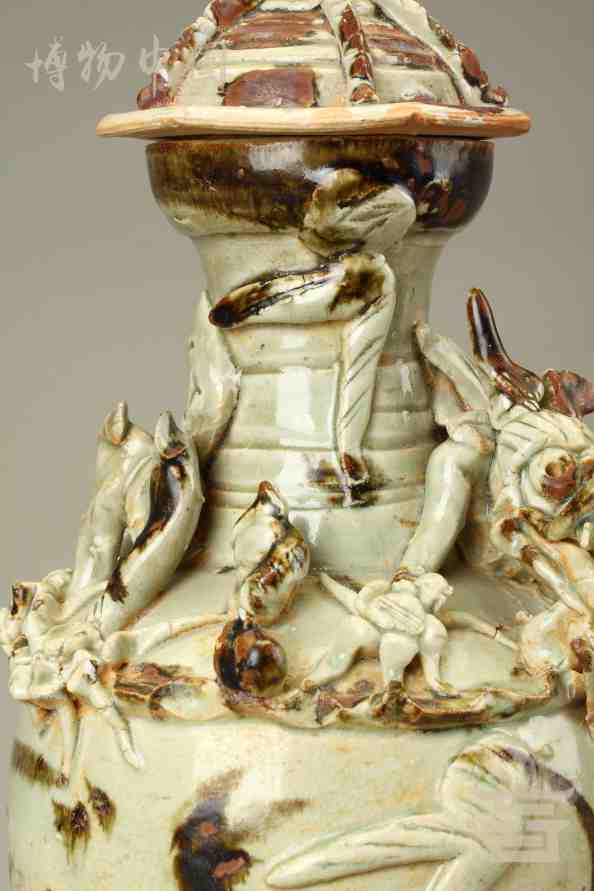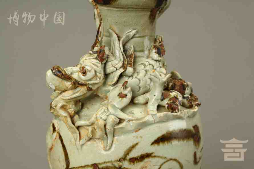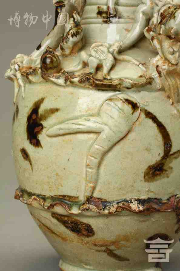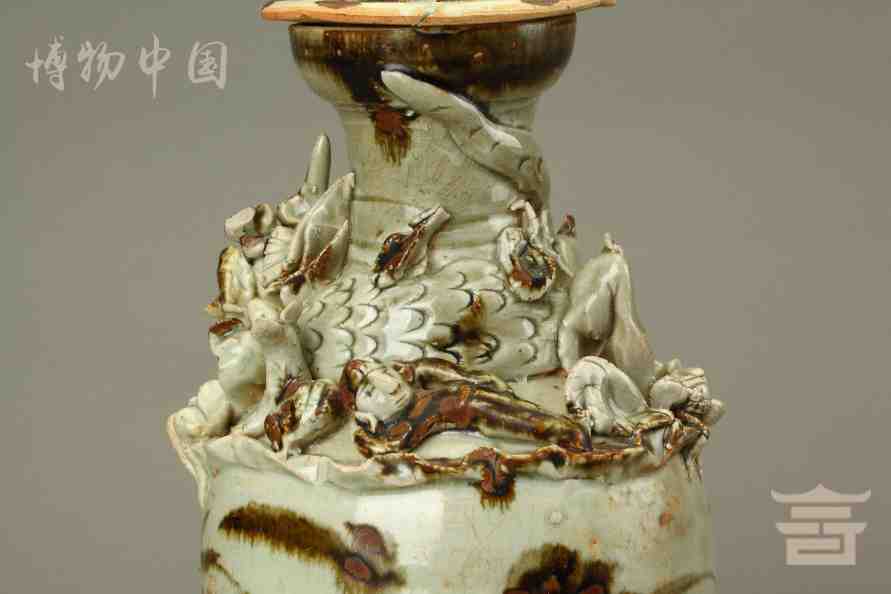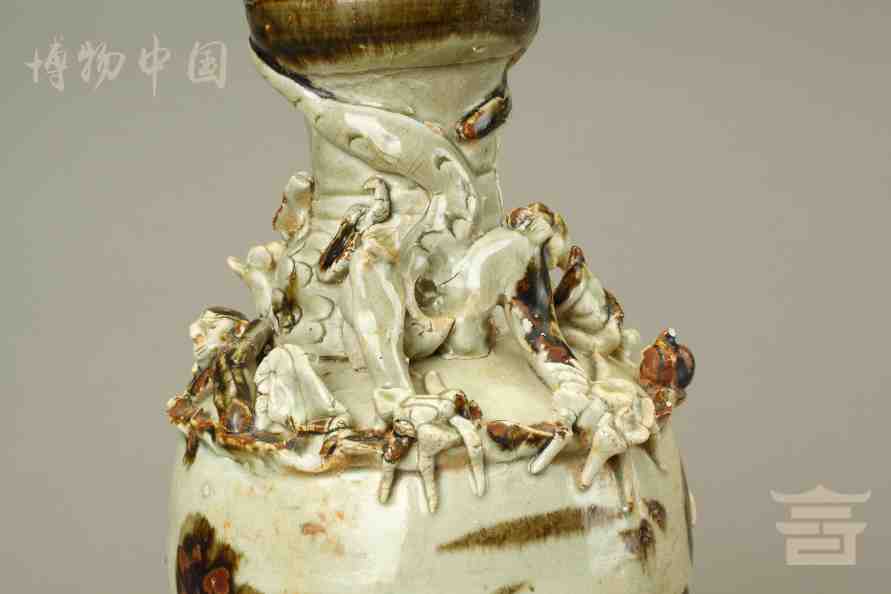 > 宋青釉褐彩堆帖蟠龙盖瓶