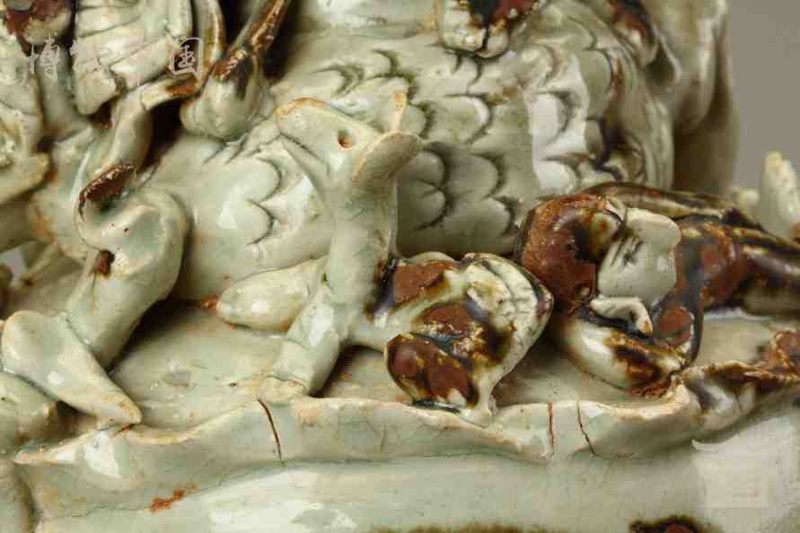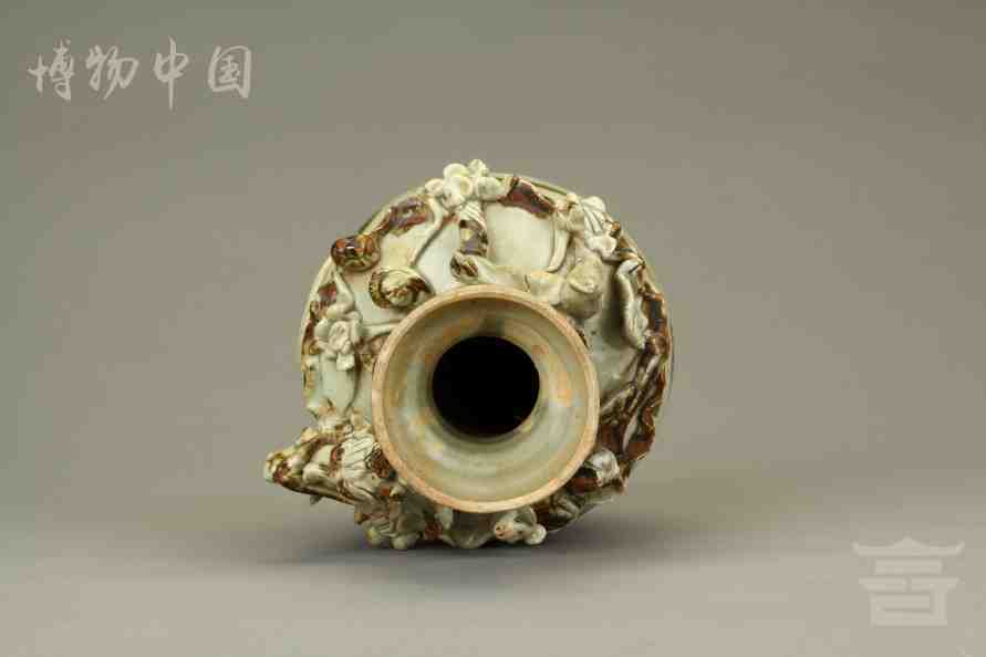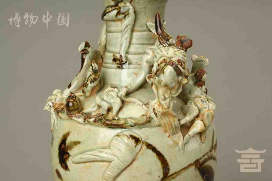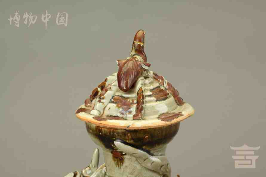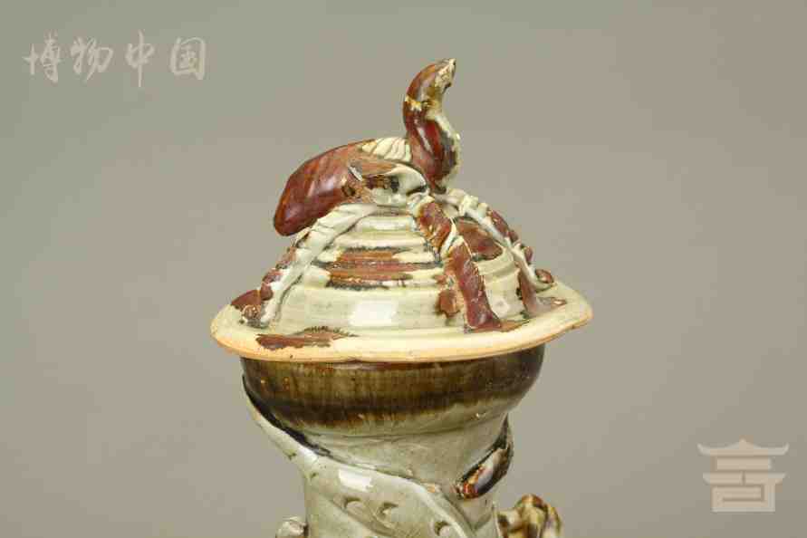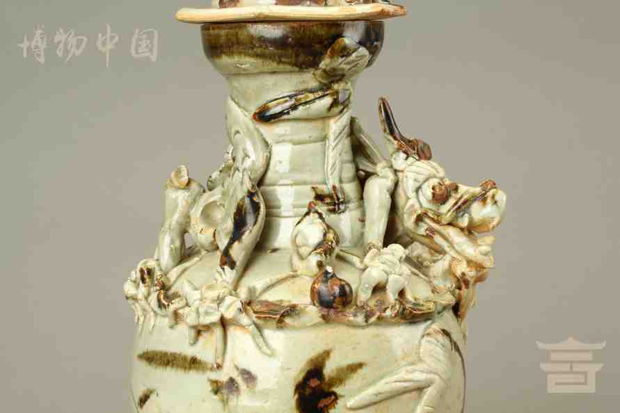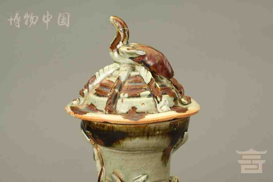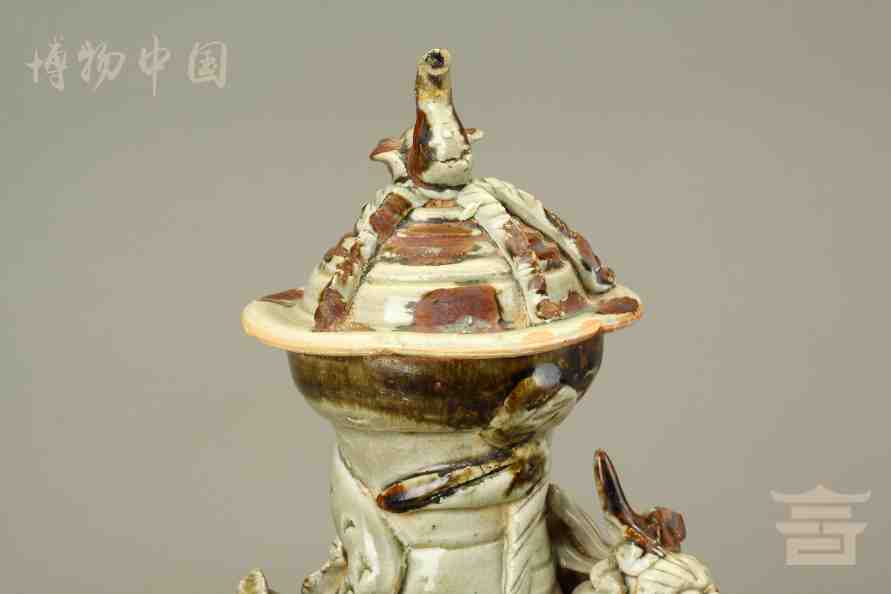 > 宋青釉褐彩堆帖蟠龙盖瓶