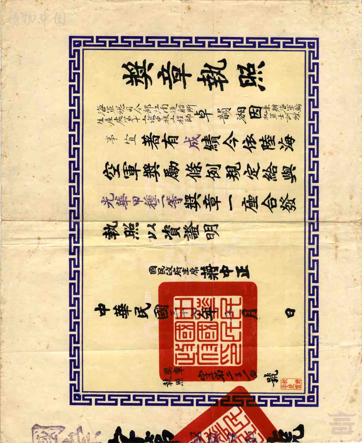 中华民国三十七年卓韵湘的光华奖章执照及奖章(2314)