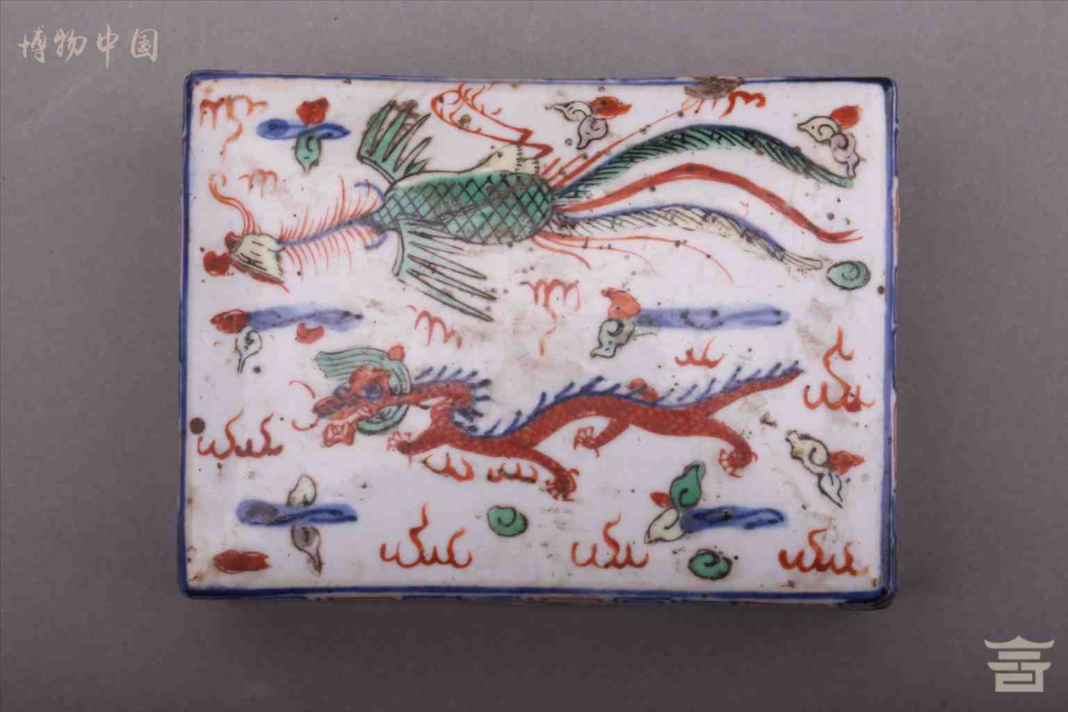 > 清粉彩龙凤纹瓷盒