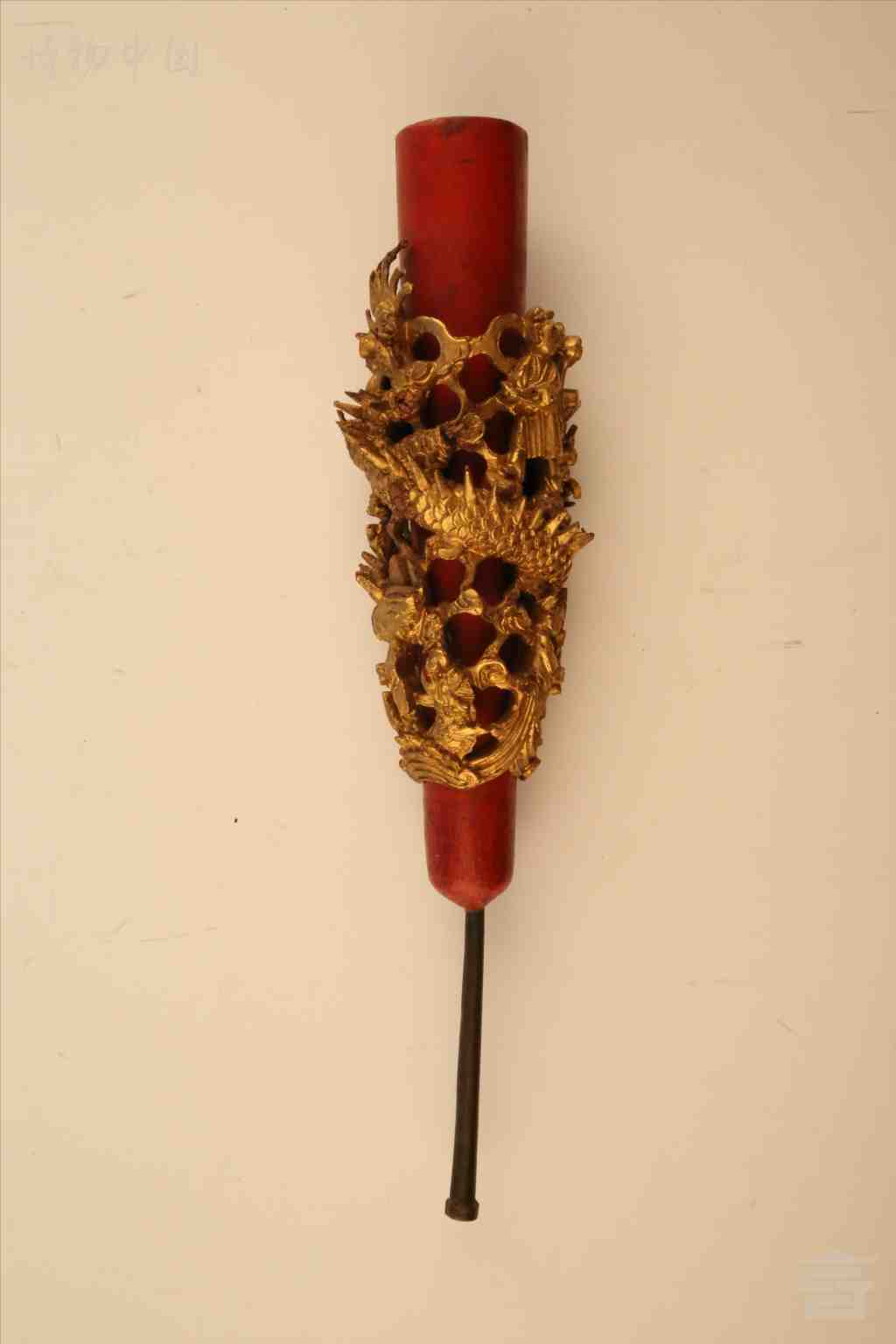清金漆圆雕龙图木烛台